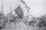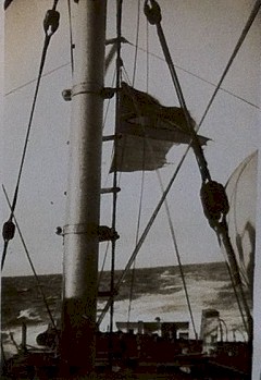 (KW36-KW37) A tattered ensign and its replacement on HMCS RUNNYMEDE K678 (KW38) Airing Hammocks on HMCS RUNNYMEDE K678 (KW39) Canadian Convoy Group Five - The Barber Pole Squardon (KW40) Knobly Hall