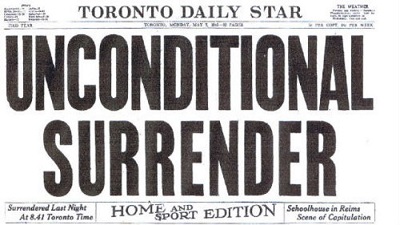 (JM124) Headline from the Toronto Daily Star 07 May 1945