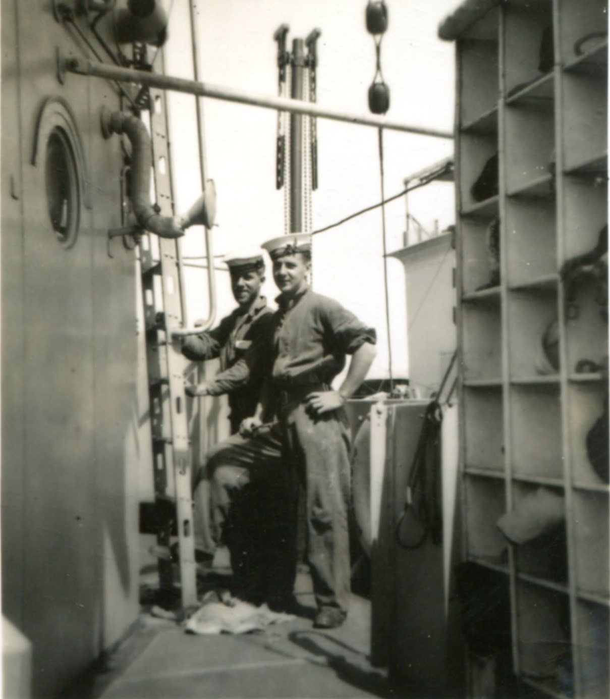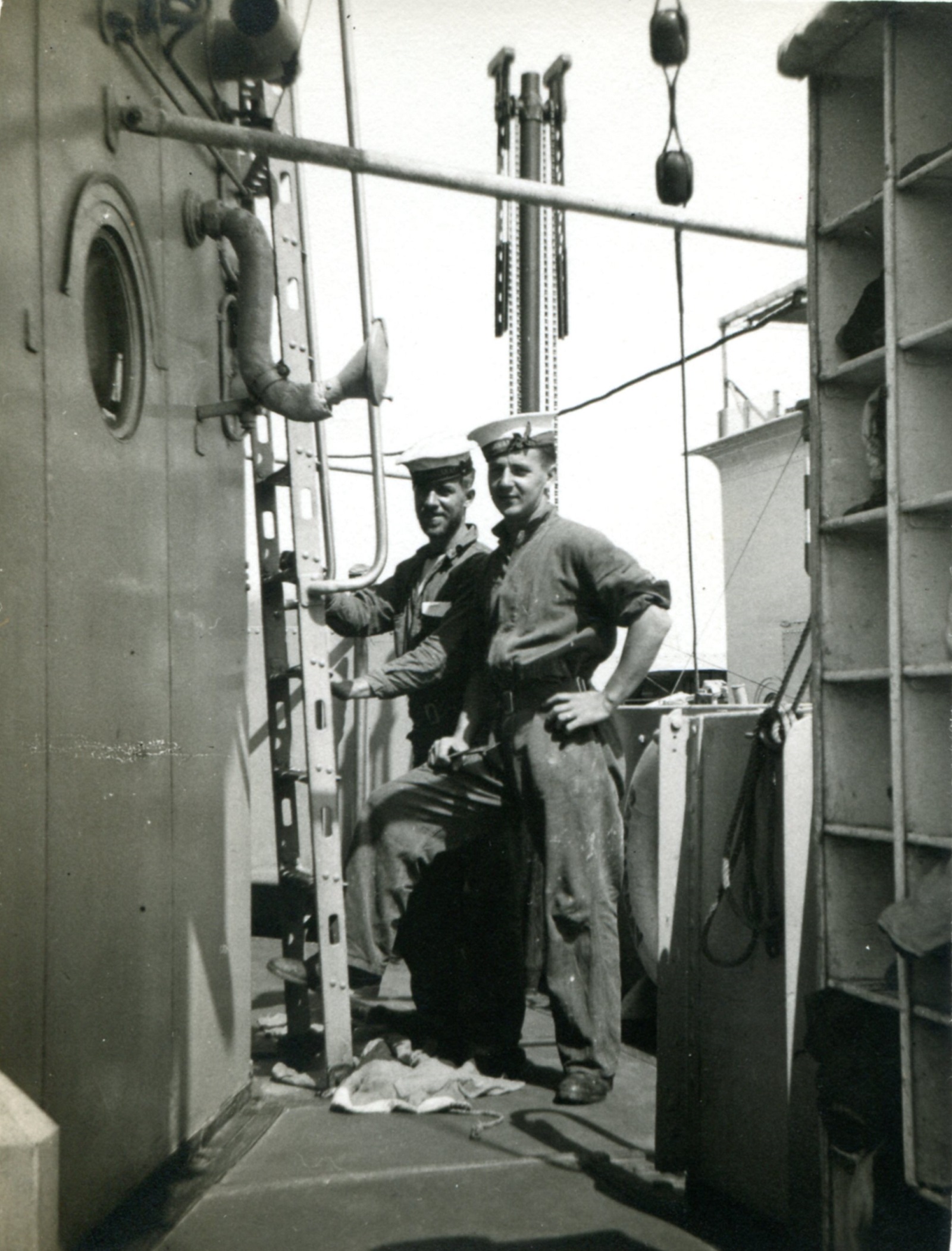 (LN16) McIntrye (left) & Sutherland on HMCS SAGUENAY