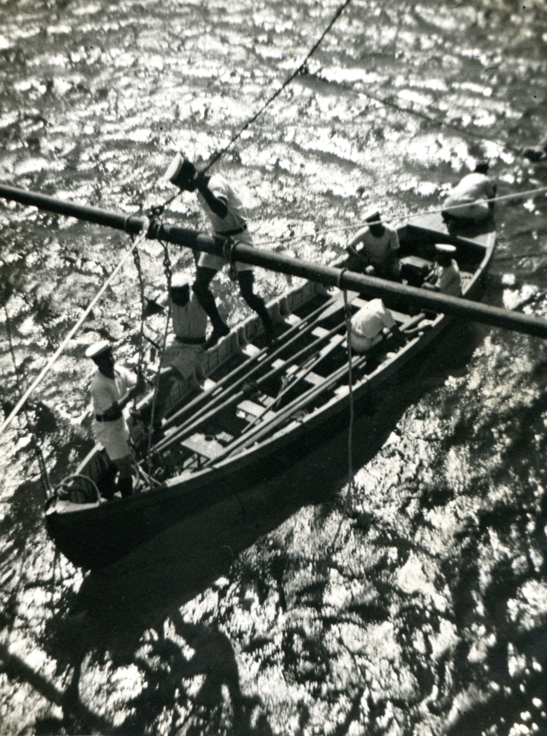 (JS78) Ship's whaler taking crew from HMCS SAGUENAY ashore to the beach - 1936. James senior 2nd row furthest right (JS79-JS82) R&R on the beaches in the sunny south - 1936. Sailors of HMCS SAGUENAY on the beaches (JS79) SAGUENAY sailors on the beach - James Senior falling, location unknown (JS80) at La Guaira, Venezuela (JS81) at La Guaira, Venezuela - James Senior, foreground (JS82) at La Guaira, Venezuela - James Senior, centre