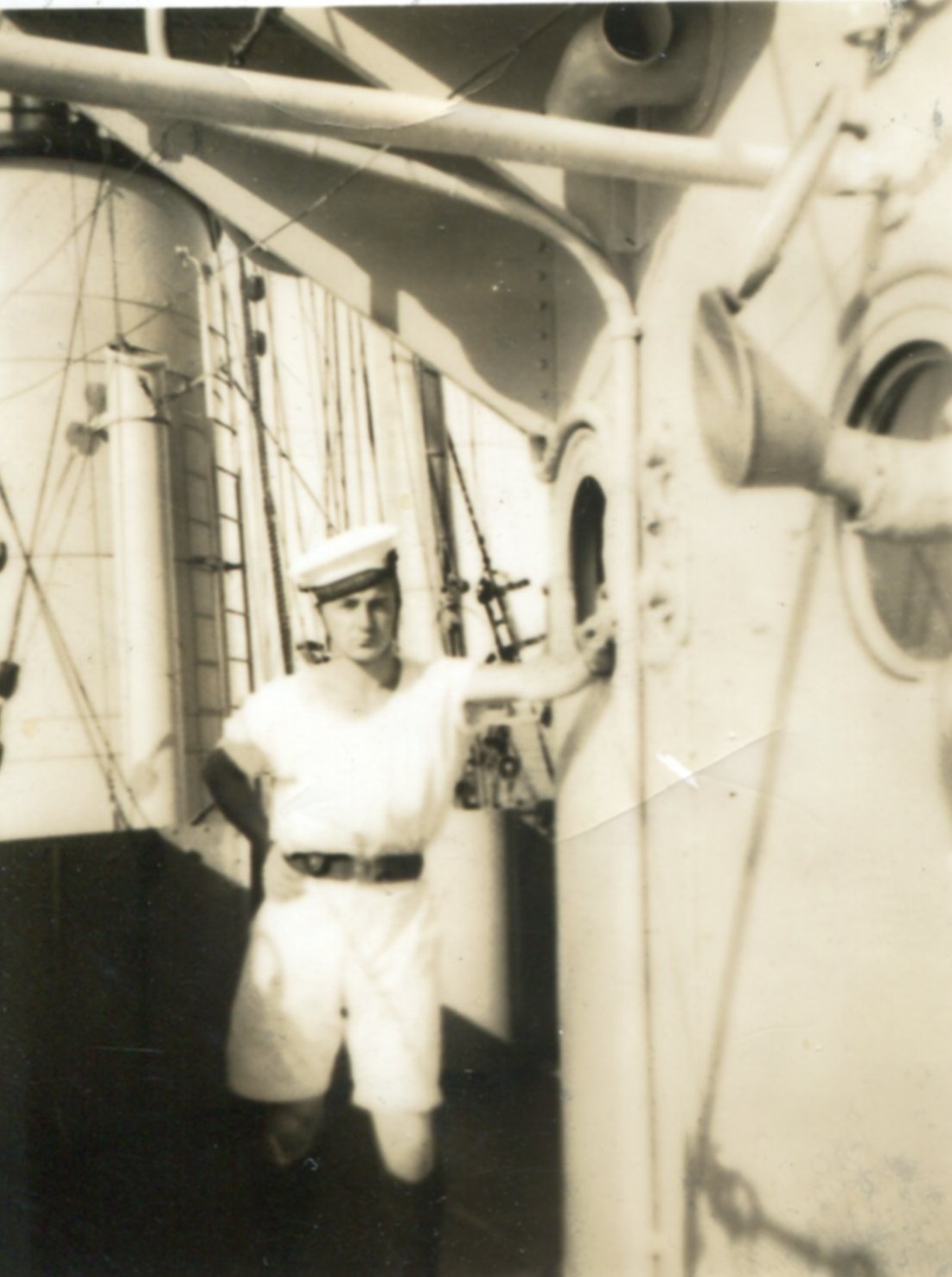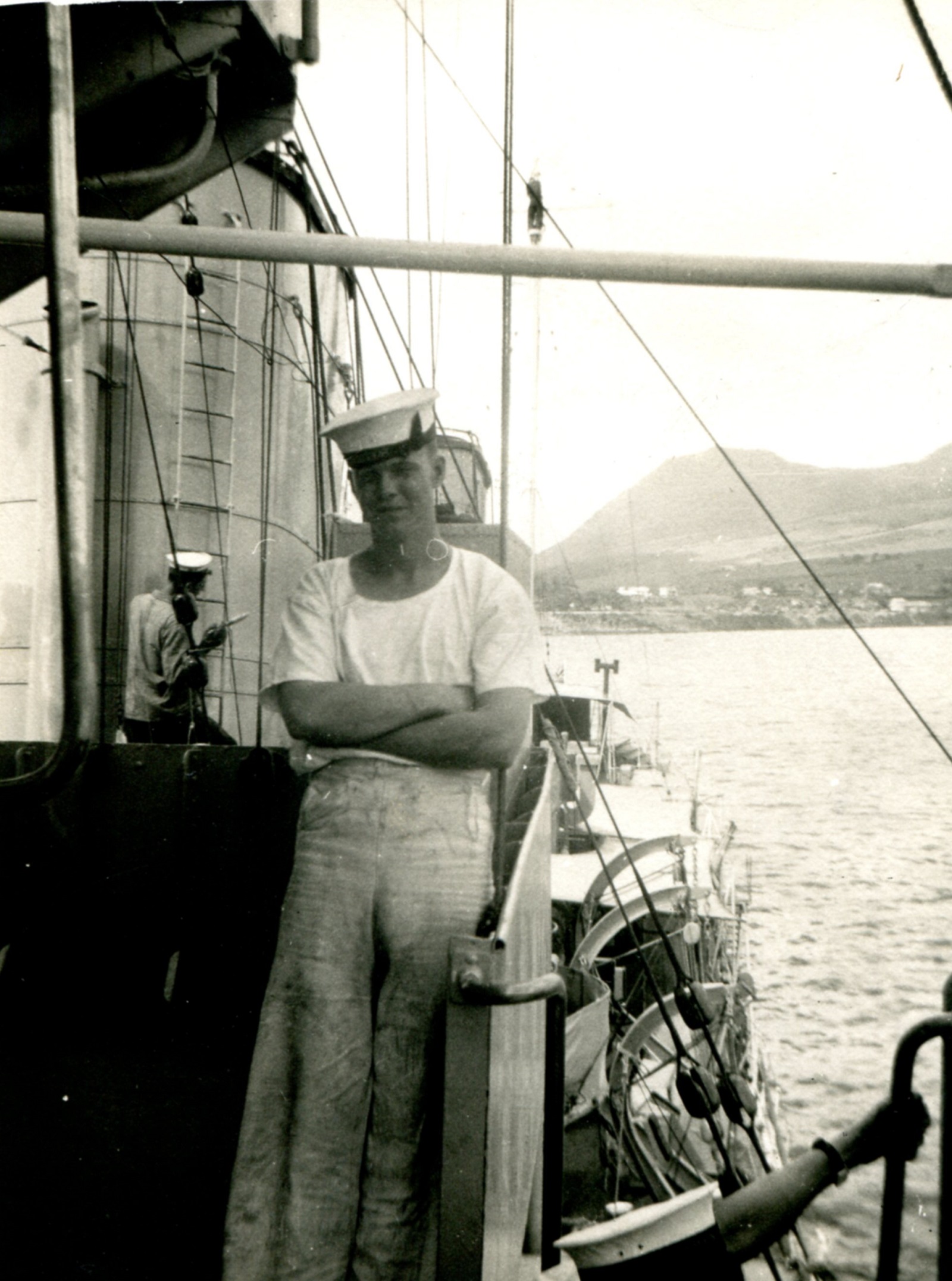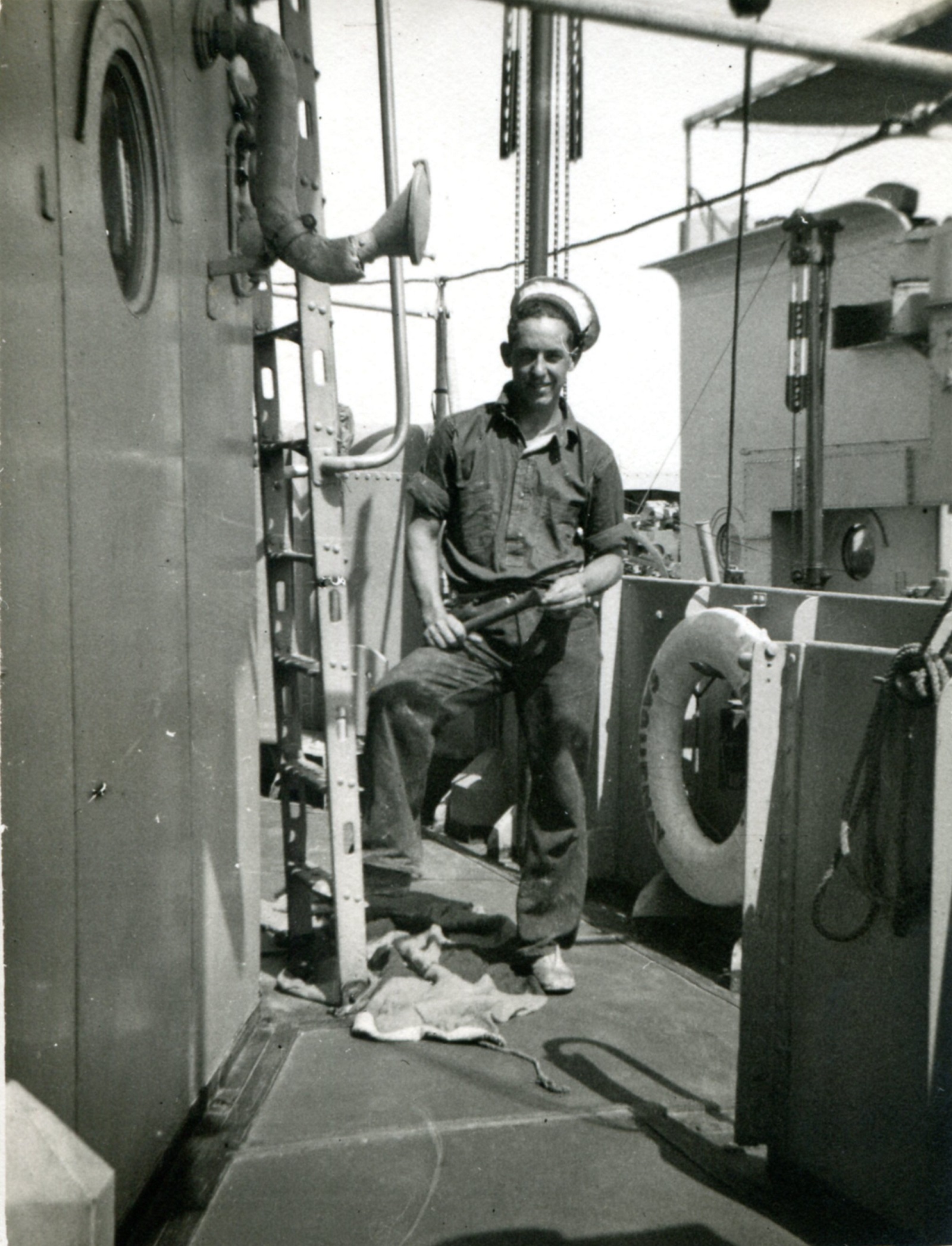 (HD29) Herbert Edward Dowling, L/Sto, RCN on HMCS SAGUENAY From the collection of Herbert Edward Dowling, Leading Stoker, RCN Courtesy of Bill Cummins