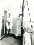 (JS73) James Senior on HMCS SAGUENAY - 1936. Note the iceberg in the background (JS74) James Senior relaxing on the upper decks on HMCS SAGUENAY - 1936 (JS75) HMCS SAGUENAY 5-oared whaler crew, 1936 - James Senior front right (JS76) HMCS SAGUENAY 5-oared whaler crew, 1936. L-R: Senior, unknown, Glover, unknown, unknown, Racine (JS77) HMCS SAGUENAY 5-oared whaler crew, 1936 - James Senior, front, left