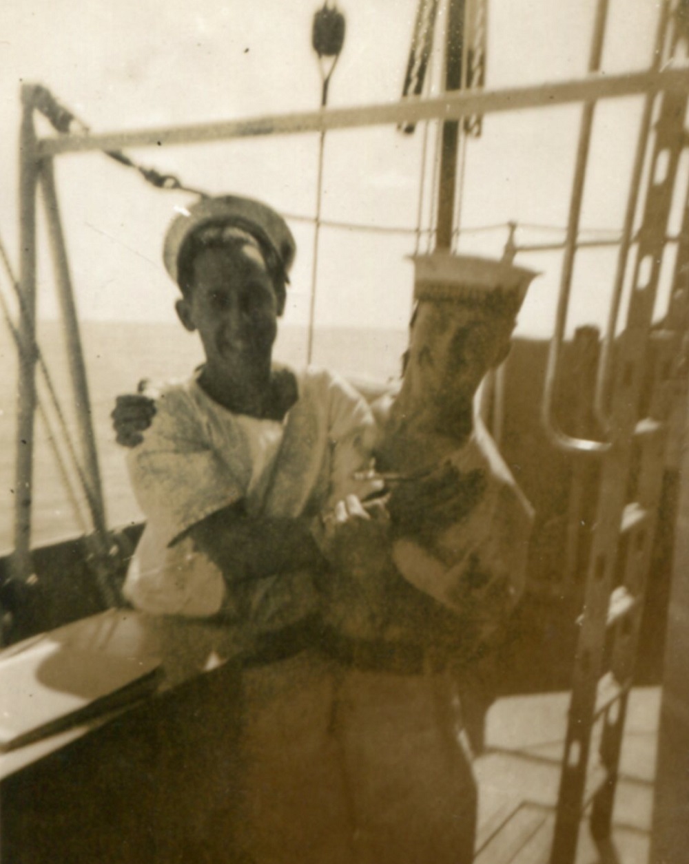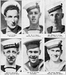 (JS112) Unknown Petty Officer on HMCS SAGUENAY circa 1937-1938 (JS113) Unknown sailor on HMCS SAGUENAY (JS114) Unknown sailor on HMCS SAGUENAY (JS115) Unknown sailors on HMCS SAGUENAY (JS116) Unknown sailors on HMCS SAGUENAY - one has an injured knee
