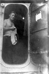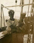(JS92) Alongside somewhere down south - 1936. Sailors on HMCS SAGUENAY under the ships awning, escaping the sun and heat - laundry hanging to the left of the gun turret (JS93) Dhobey (laundry) day on HMCS SAGUENAY - James Senior on the right (JS94) James Senior (standing) on HMCS SAGUENAY (JS95) James Senior on HMCS SAGUENAY - 1936 (JS96) James Senior (front) hiking in Haiti circa 1936