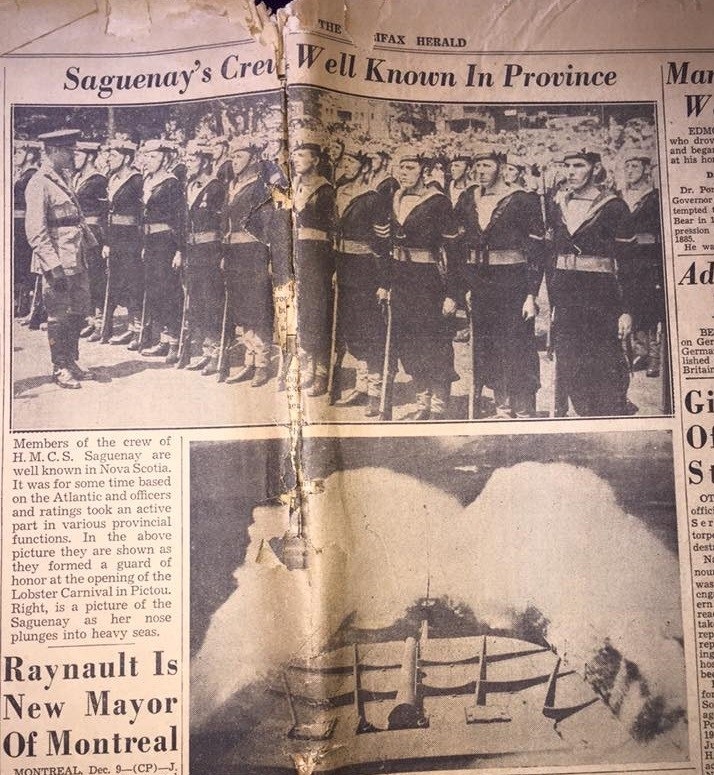 (JC01-JC02) Front pages from the Halifax Herald on the torpedoing of HMCS SAGUENAY