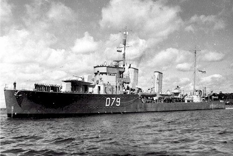 Paid off 30 Jul 1945, she was sold for scrap in 1945 to International Iron and Metal in Hamilton, Ontario and was broken up in 1946. (note: another ref has her sold on 17 Jul 1948 and broken up.)