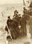 (LN01) Unknown sailor on the flag deck of HMCS SAGUENAY (LN02) Unknown sailors on the flag deck of HMCS SAGUENAY (LN03) Chief Yeoman of Signals Pritchard (LN04) Supermarine Walrus Mk I K8343 - appears to be taking off near HMCS SAGUENAY (LN05) HMCS SAGUENAY'S boat crew "Going out the boom and into the whaler for a pull"
