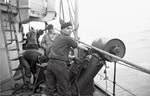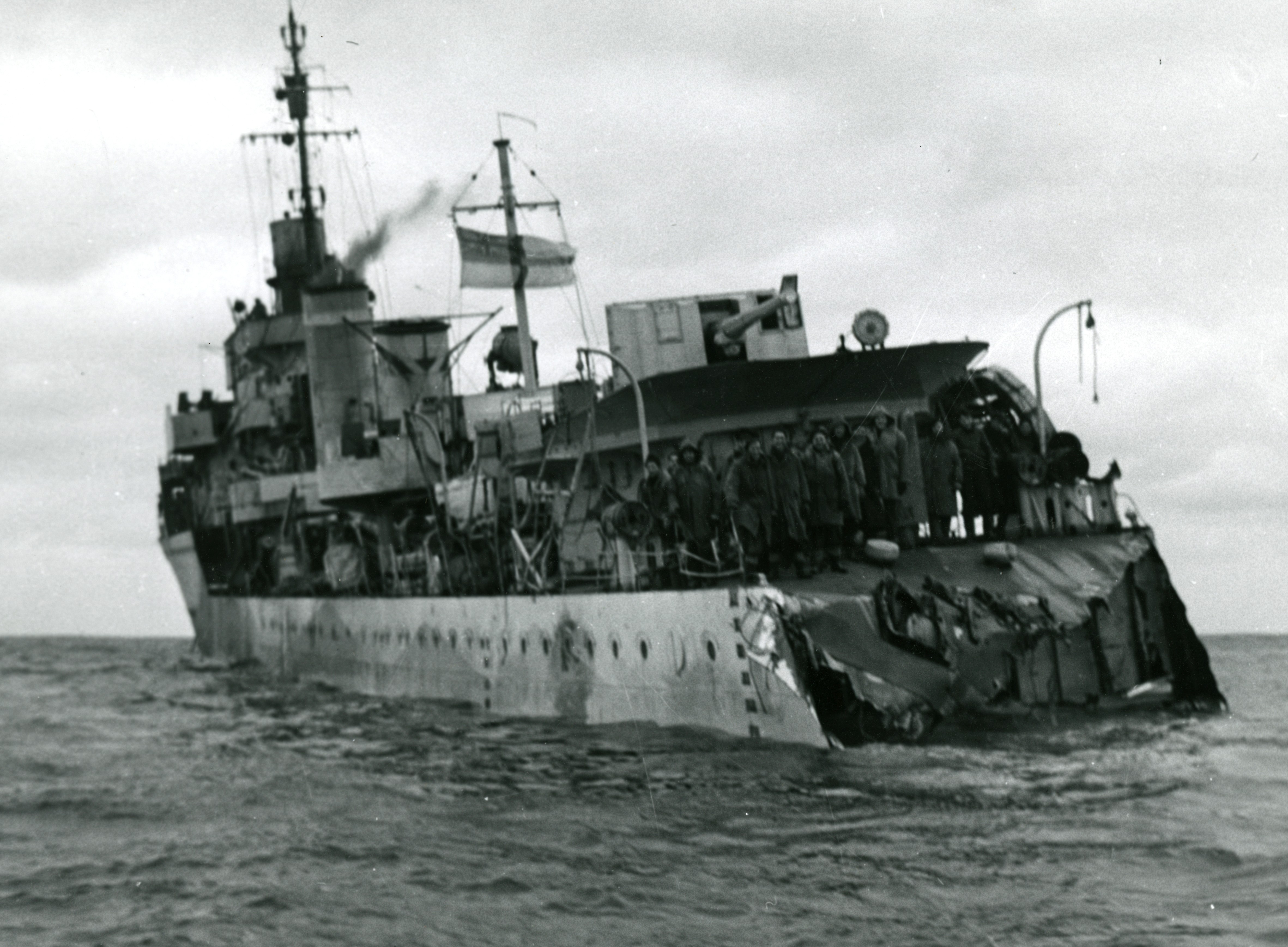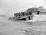 (SAG015) Personnel preparing to fire depth charges as the destroyer HMCS SAGUENAY attacks a submarine contact at sea, 30 Oct 1941 // Source: Canada. Dept. of National Defence / Library and Archives Canada / PA-204329 (SAG016) HMCS SAGUENAY shortly after her collision with the SS AZAR // Courtesy of Roger Litwiller (SAG017) Crew of HMCS SAGUENAY looking at what is left of her quarterdeck after being rammed by the SS AZAR // Courtesy of the Naval Museum of Halifax (SAG018) HMCS SAGUENAY I79 crew on the fo'c's'le preparing her to be towed after her collision with the SS Azra // From the collection of Howard Finkbeiner, SBA, RCNVR // Courtesy of Carol Finkbeiner Thomas (SAG019) HMCS SAGUENAY I79 under tow by a tug // Courtesy of Colin Litster