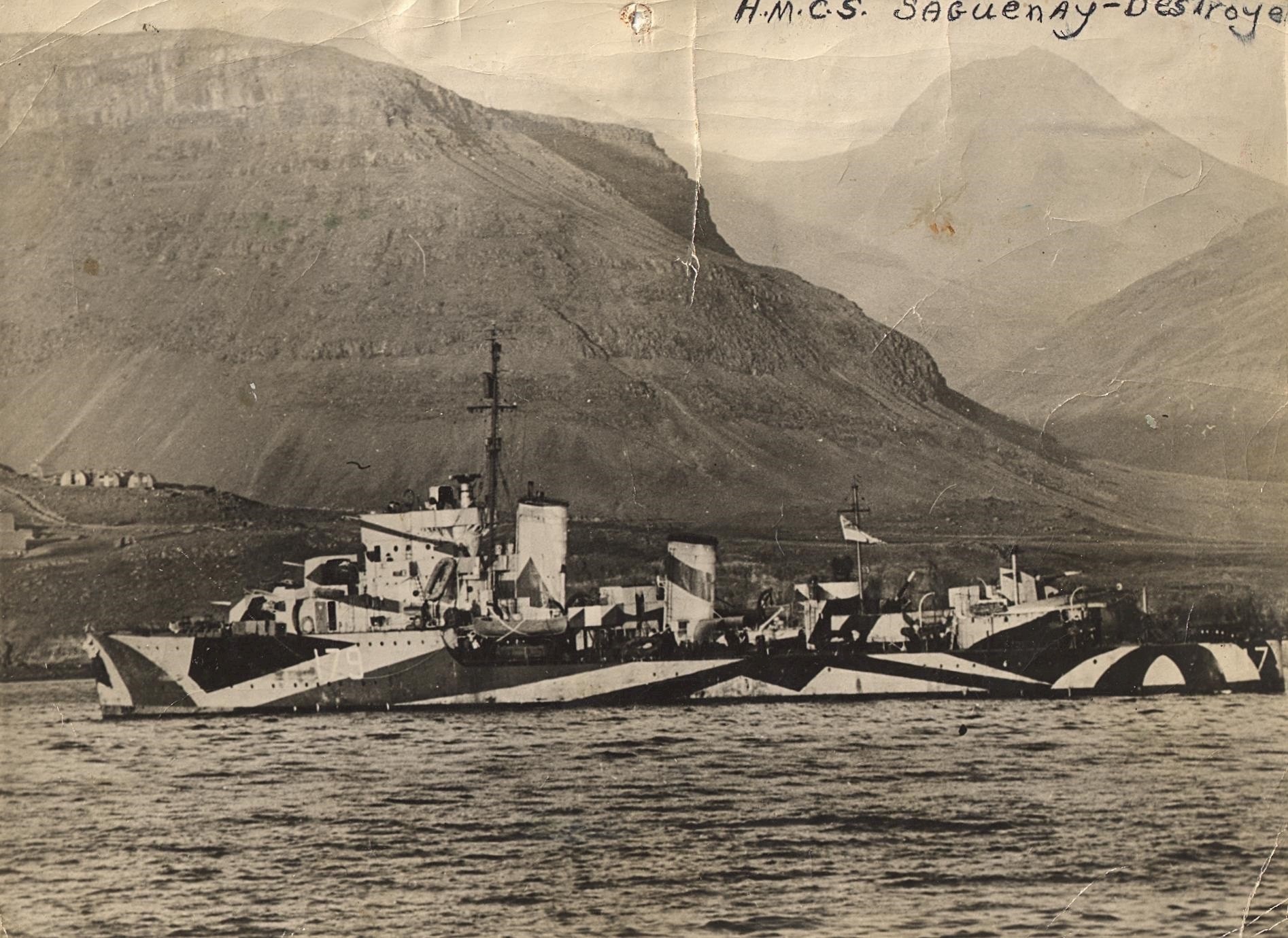 (SAG022) HMCS SAGUENAY D79 Christmas card // From the collection of Archie Dowling, Stoker RCN // Courtesy of Bill Cummins (SAG023) Ira Johnson and shipmate on HMCS SAGUENAY circa 1939 // From the collection of Ira Johnson, CPO LR2, RCN // Courtesy of Marie Paulowich (SAG024) HMCS SAGUENAY seen from HMCS SACKVILLE K181 // From the collection of Kenneth Medford, DSM // Courtesy of Gary Medford (SAG025) HMCS SAGUENAY I79 with a disruptive paint scheme // From the collection of CPO Lloyd Wallace // Courtesy of Peter Hanlon (SAG026) HMCS SAGUENAY // From the collection of Robert Macklem // Courtesy of Kelly Macklem