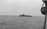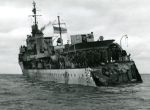 (RTL-REM059) HMCS SAGUENAY with her stern gone, following a collision with the Panamanian freighter SS Azra (RTL-REM060) SS Azra has begun to list following a collision with HMCS SAGUENAY (RTL-REM061) HMCS SAGUENAY, down by the stern, but still afloat (RTL-REM062) With her stern gone and after deck completely awash many of HMCS SAGUENAY sailors have moved to her fo'c's'le while they prepare to have the ship towed. Webmaster's note: While there would be room below decks for the crew in the forward section of the ship, there was no guarantee that she ship would not sink and its is better to be above decks just in case. From the collection of Ross E. Milligan, PO, RCNR Courtesy of Roger Litwiller