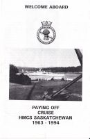 Schreurs, in a diving accident in Shoal Channel, Howe Sound. SASKATCHEWAN was paid off on 01 Apr 1994, purchased by the Artificial Reef