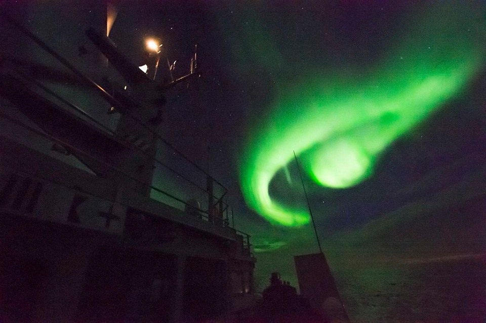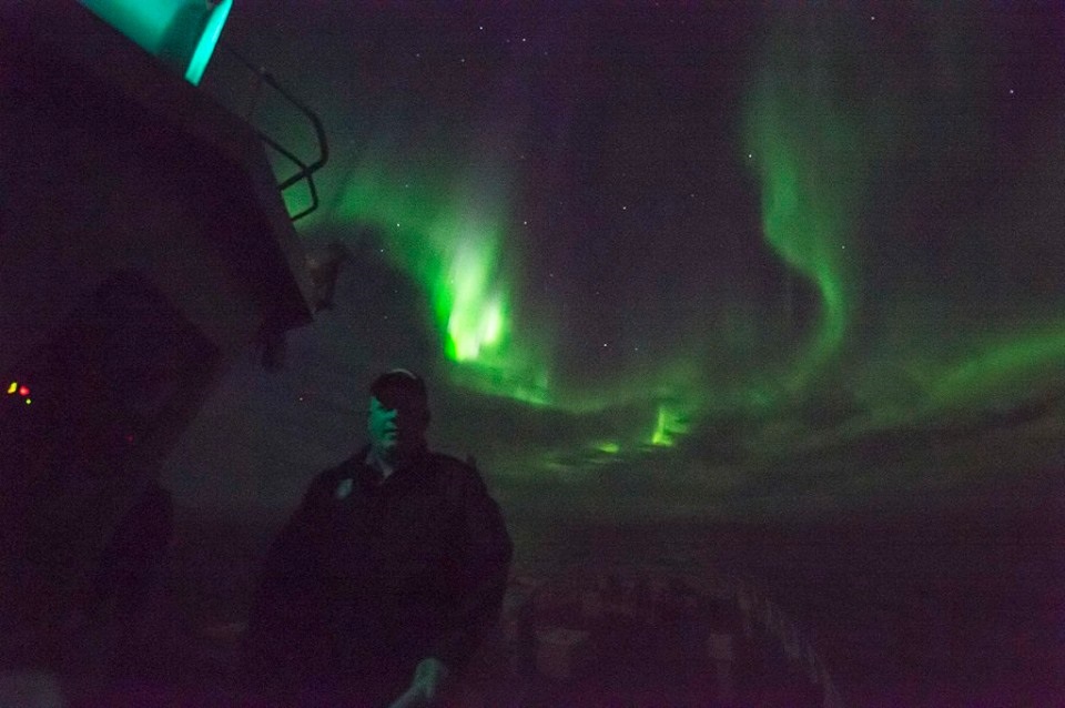 (SHW002-SHW005) The Northern Lights seen from HMCS SHAWINIGAN 704 in the Hudson Strait, 2016 DND Photo Photographer: Cpl Clarkson, Phototech