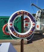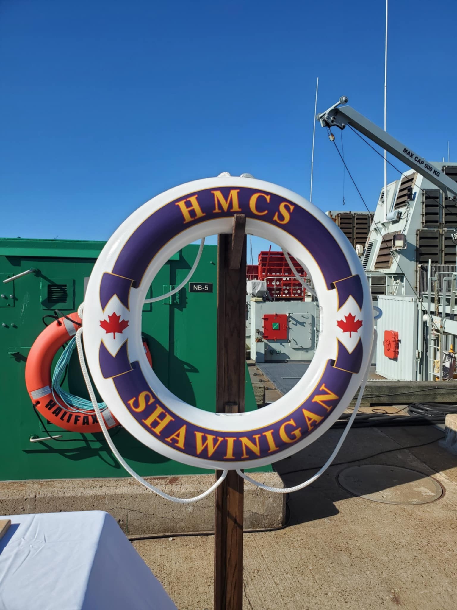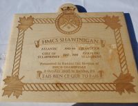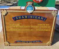 (SHW006) Battle Honours Board for HMCS SHAWINIGAN 704 (SHW007) HMCS SHAWINIGAN'S Paying Off Pennant (SHW008) HMCS SHAWINIGAN'S kisby ring (SHW009) One of several plaques for presentations during the paying off ceremony for HMCS SHAWINIGAN 704