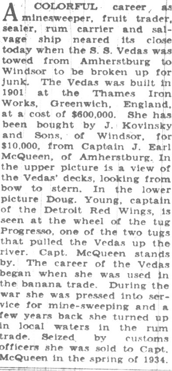 Vedas (ex-SHEARWATER) is mentioned in a book titled "Booze Boats &