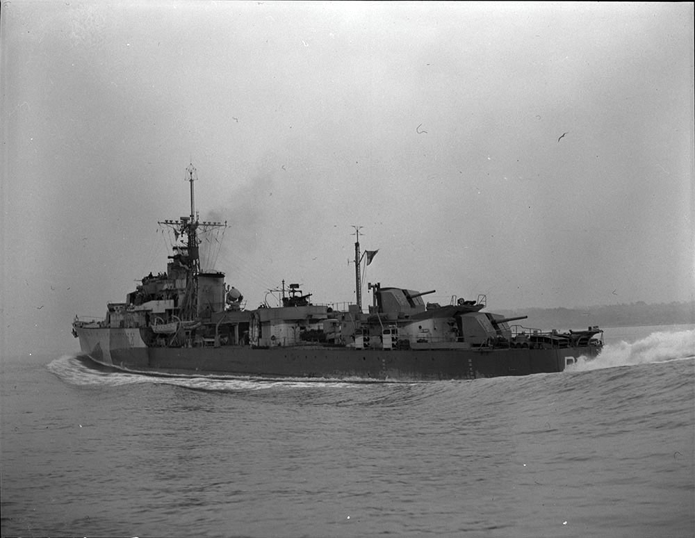 (SIU001) View of the port quarter of HMCS SIOUX R64 - 1944 // Source-credit: Library and Archives of Canada - a134296-v8