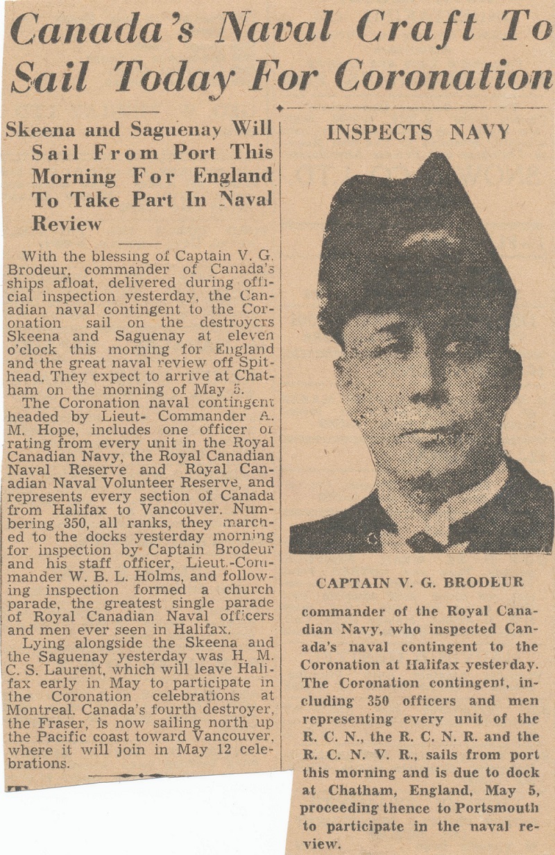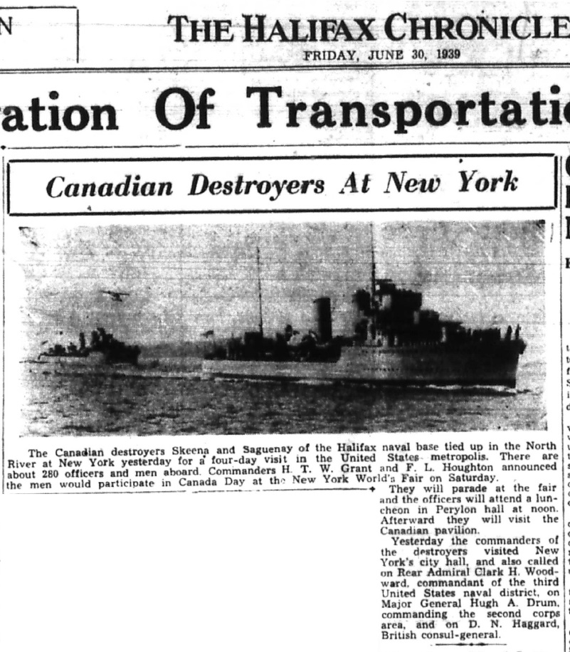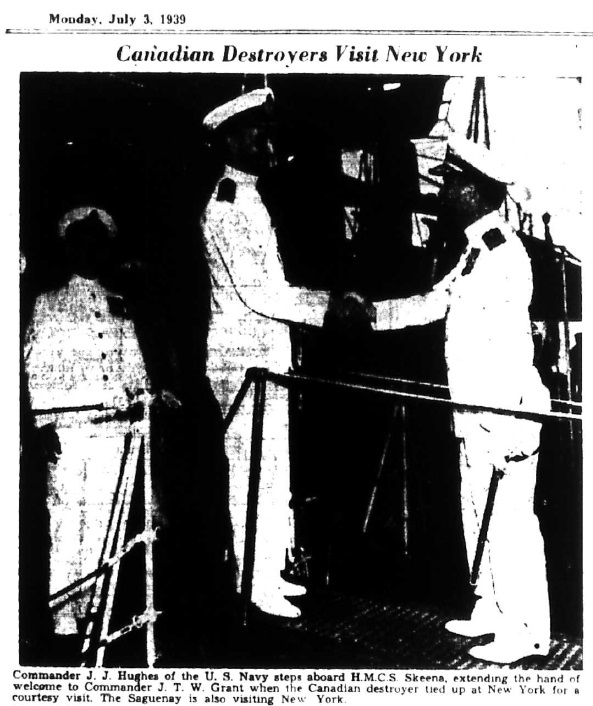 (SK016) HMCS SKEENA and HMCS ST LAURENT visit New York - The Halifax Mail, Fri., 30 Jun 1939 // Researched by / Courtesy of George Newbury (SK017) HMCS SKEENA visits New York, NY - The Halifax Mail, Mon., 03 Jul 1939 // Researched by / Courtesy of George Newbury (SK018) Stokers on HMCS SKEENA c1939/40. Sto PO Robert F. Dallin, top left // From the collection of Robert F. Dallin, Chief Stoker Mechanic, RCN // Courtesy of Peter White (SK019) Peter Meek and John Pinkney on HMCS SKEENA during WW2 // Courtesy of the Battle of the Atlantic Society Canada's Naval Memorial Trust Collection (SK020) Lt Peter Chance and Wren L/Tel Margaret Parker, WRNS on HMCS SKEENA on their wedding day, 13 Sep 1944 // Courtesy of Peter Chance