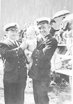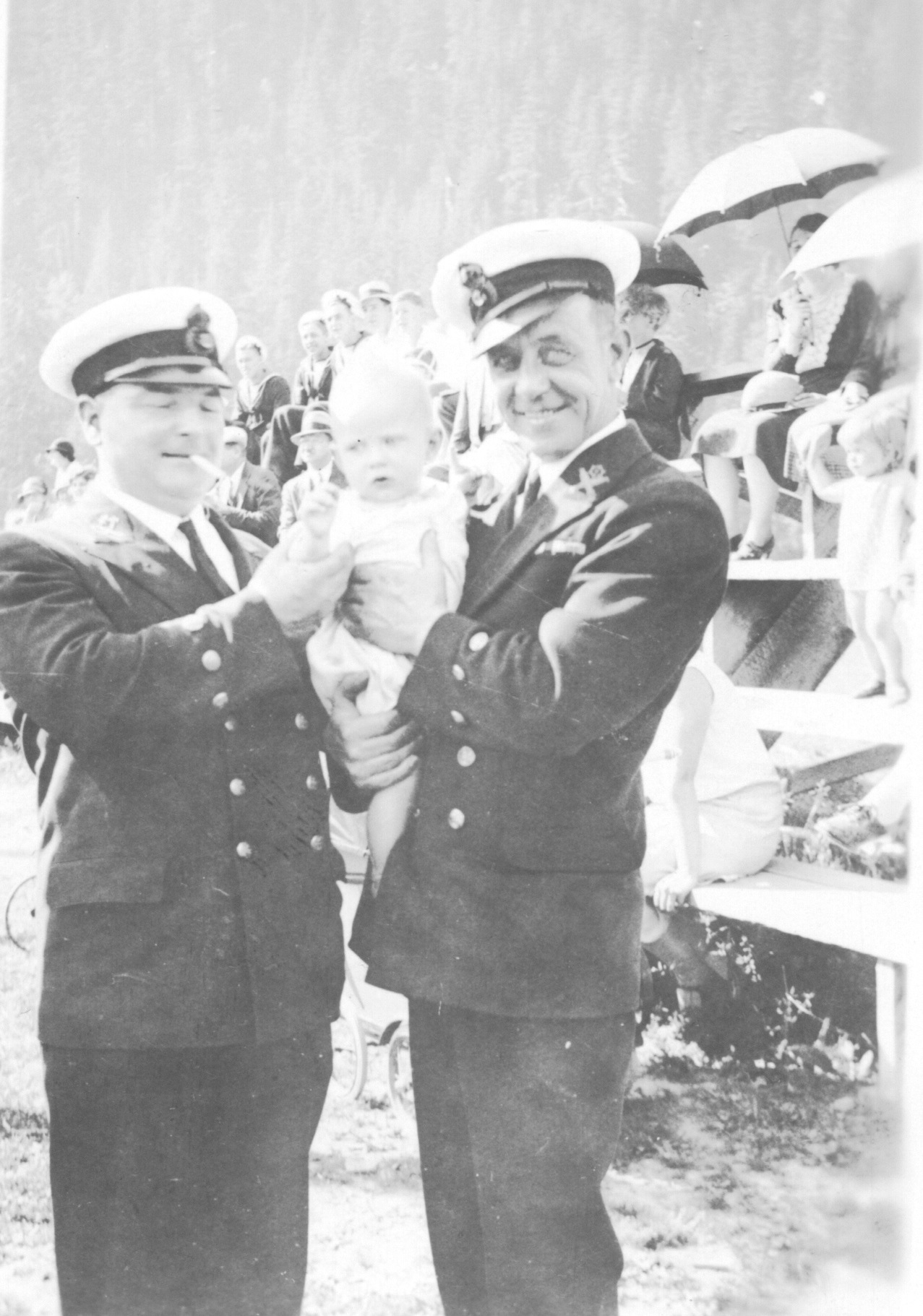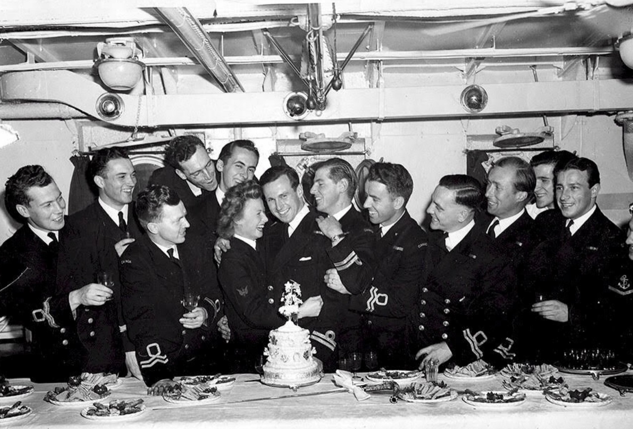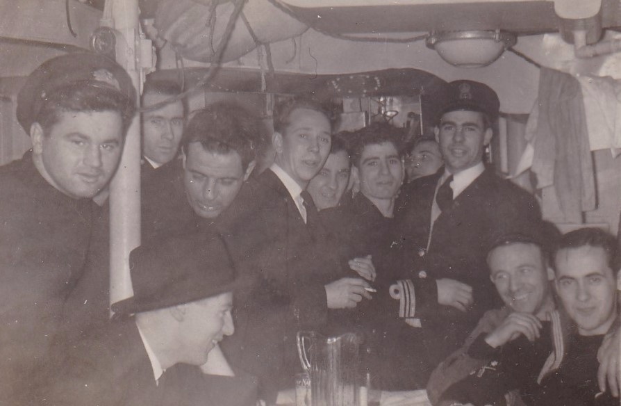 (BB269) the LCdr in the photo is the youngest man on ship and therefore the CO for the day. Standing, first on the right, is LCdr Patrick Francis Xavier Russell, RCN, the commanding officer, who is wearing the uniform of a Chief Petty Officer.