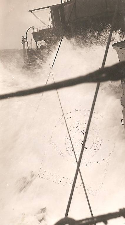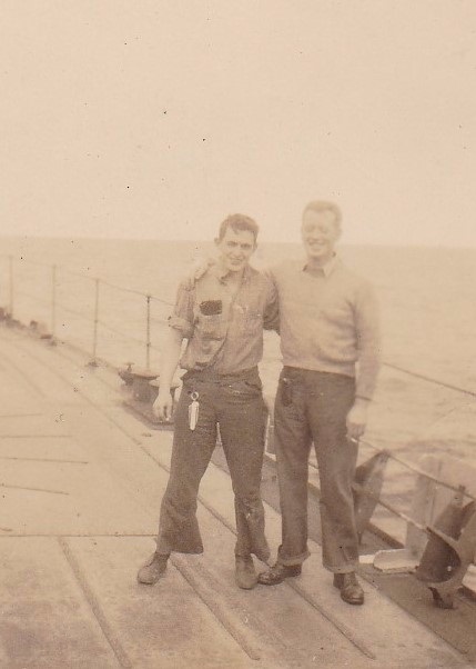 (JR16) John Rickard (left) and Ken Currie aboard HMCS SKEENA I59, St. John's, Newfoundland - 1941 (JR17) HMCS SKEENA taking a wave a midships - Oct 1941