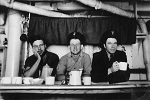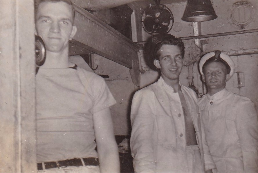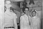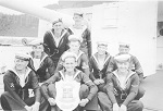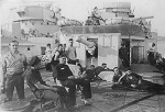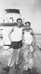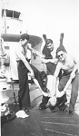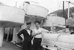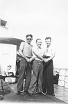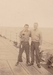 (JD12) Signalmen Andrews (left) and Squeek Benson on HMCS SKEENA (JD13) Signalman Squeek Benson (right) with unknown sailor on HMCS SKEENA (JD14) L-R: Dunick, Eaton, Holt on HMCS SKEENA (JD15) L-R: Holt, Sewall and Dunick with Les Coll being held upside down on HMCS SKEENA (JD16) Dunick (left) and Tommy on HMCS SKEENA