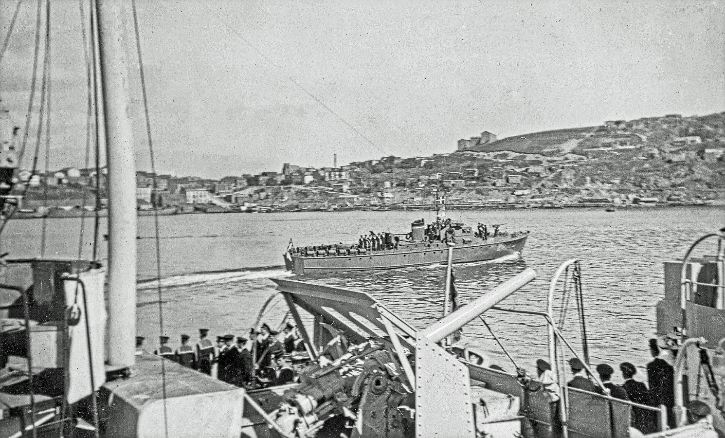 (SK006) HMCS SKEENA D59's original band, Manzanillo, Mexico // Courtesy of the CFB Esquimalt Naval and Military Museum (SK007) HMCS SKEENA I59 - "Spent 3 weeks on SKEENA on loan from DONNACONA". Photo from a postcard // From the collection of Kenneth Medford // Courtesy of Gary Medford (SK008) Admiral's barge departs HMCS SKEENA circa 1937 // From the collection of John James Ashworth Clarke // Courtesy of Eric Clarke (SK009) HMCS SKEENA Crossing the Equator Certificate - 1938 // From the collection of Hugh C. Dunbar // Courtesy of Jeanie Dubberley (SK009) HMCS SKEENA Crossing the Line certificate 04 Feb 1938