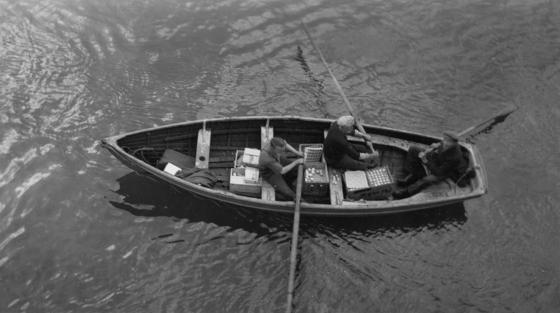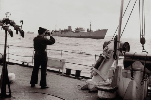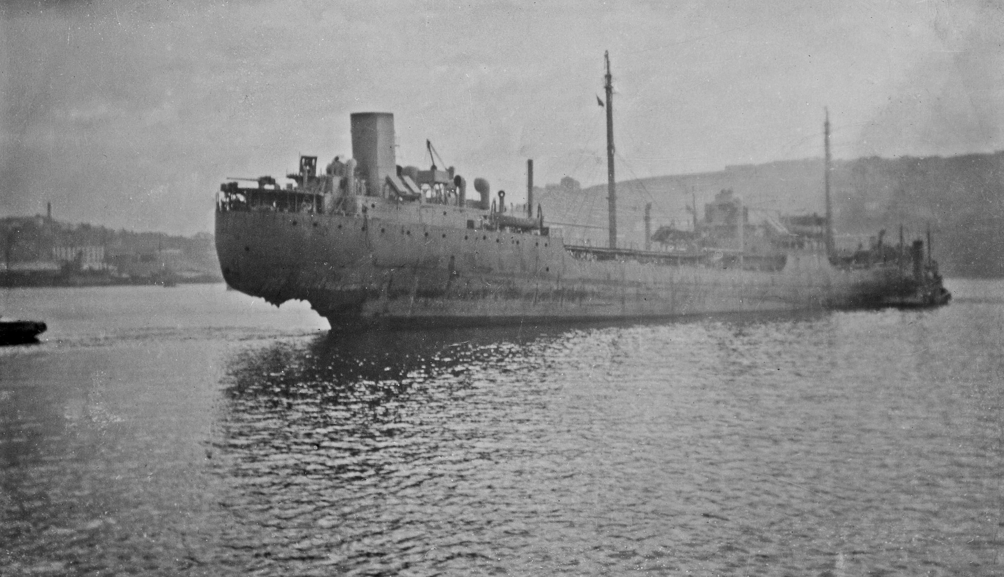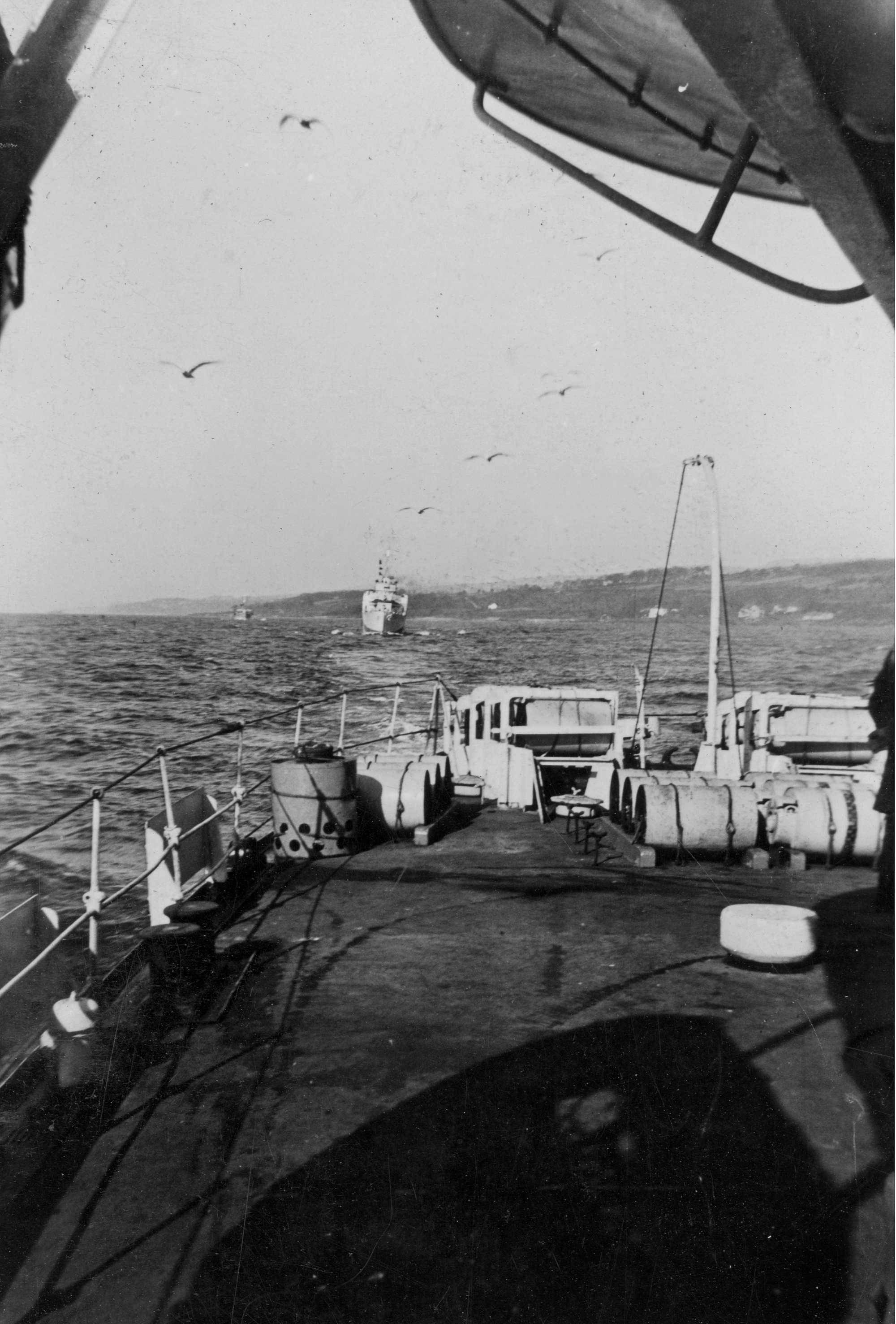 (FH39-FH40) HMCS ST FRANCIS I93 arriving at Londonderry, Northern Ireland (FH41) Bum Boat Free State Ireland , eggs, stockings and tomatoes to trade for smokes (FH42) Unidentified submarine in the River Foyle (FH43) Barrage Balloon - England 1942