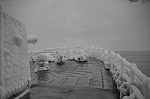 (FH35) An evening at sea - SKEENA wake spreading out astern (FH36) HMCS SAGUENAY I19 (FH37) HMCS SAGUENAY I79 with unidentified corvette (FH38) HMCS SAGUENAY I79 "riding the rough Atlantic" (FH38) HMCS SKEENA with her A turret and guard rails iced up - Jan 1942