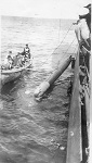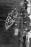 (WB82) Cooks and Stewards on HMCS SKEENA (WB83) HMCS SKEENA'S boat's crew assisting in the recovery of a training torpedo (WB84) Allied Submarine N34 passed by HMCS SKEENA (WB85) Unknown sailors on HMCS SKEENA (WB86) USS ALABAMA seen from HMCS SKEENA - location unknown