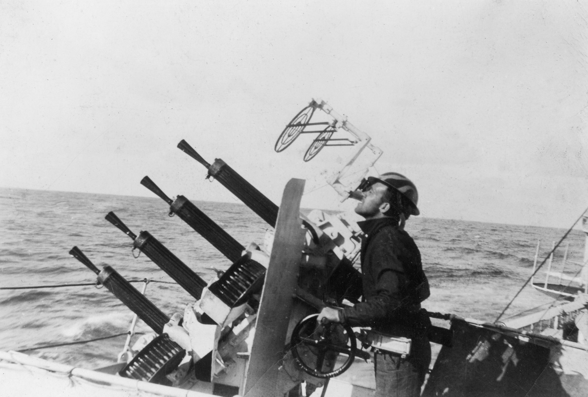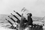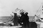(FH49) Boat drills - recovering the ships whaler (FH50) Fred Hollands on the Vickers Mark III .50 quad-mount AA gun on HMCS SKEENA (FH51) Kirk and Howatt on the Vickers Mark III .50 quad-mount AA gun on HMCS SKEENA (FH52) HMCS SAGUENAY I79 following astern of HMCS SKEENA