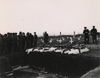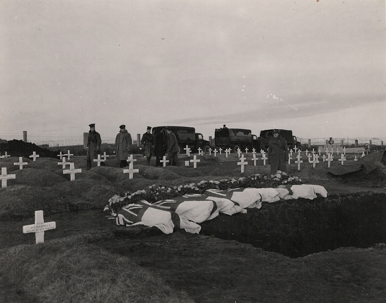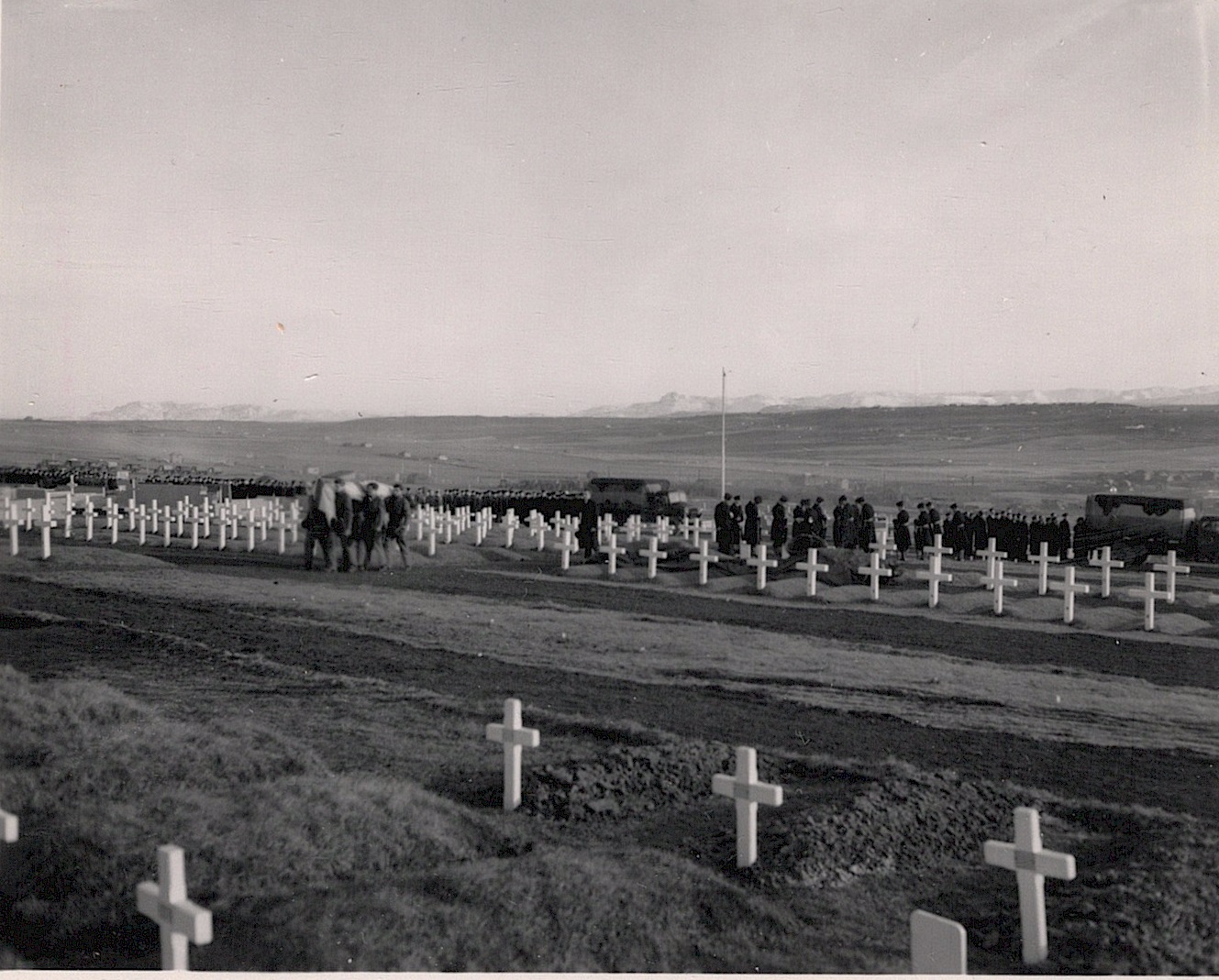 The US Army provided wooden coffins to the Canadians, however the British Naval Authorities refused their use. Wood was a scarce commodity in Iceland and was not going to be wasted. The bodies were wrapped in the naval white ensign and carried to the graveside by members of the SKEENA crew. The oldest among the dead was 30, the youngest 19. Most of the men were in their twenties.