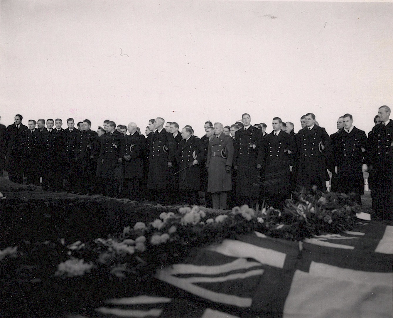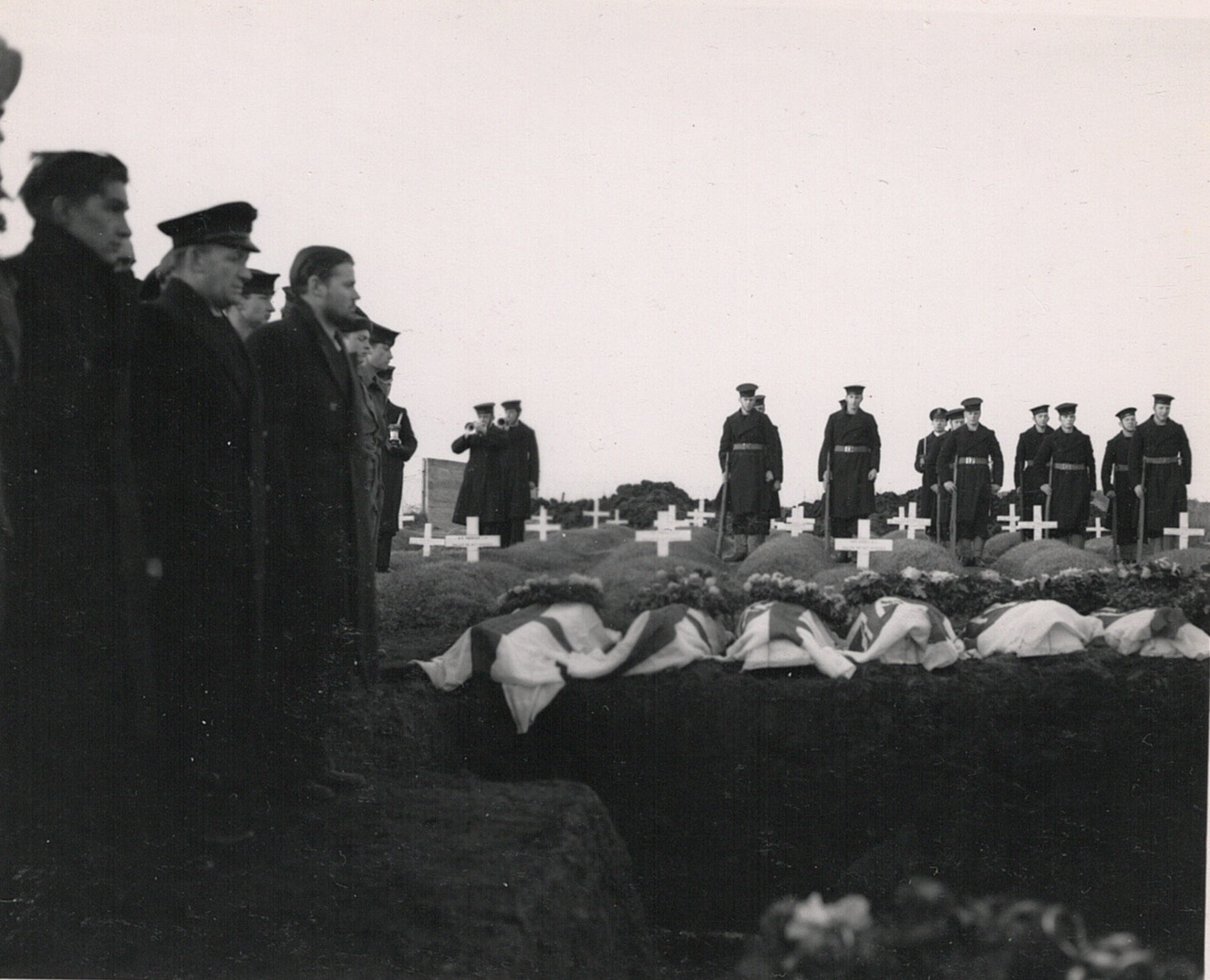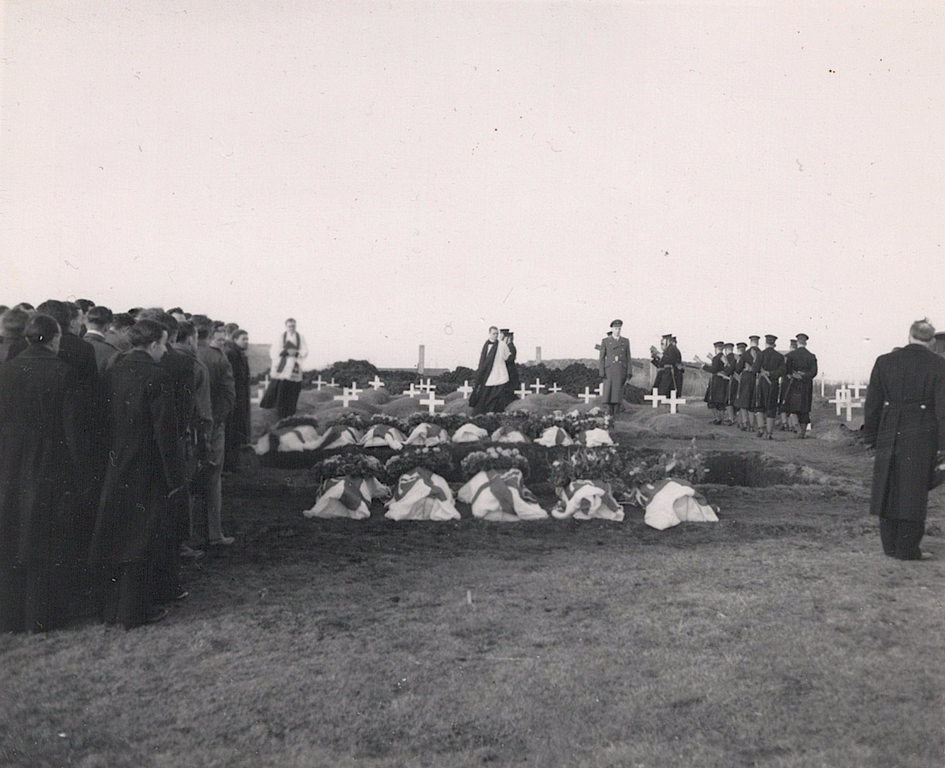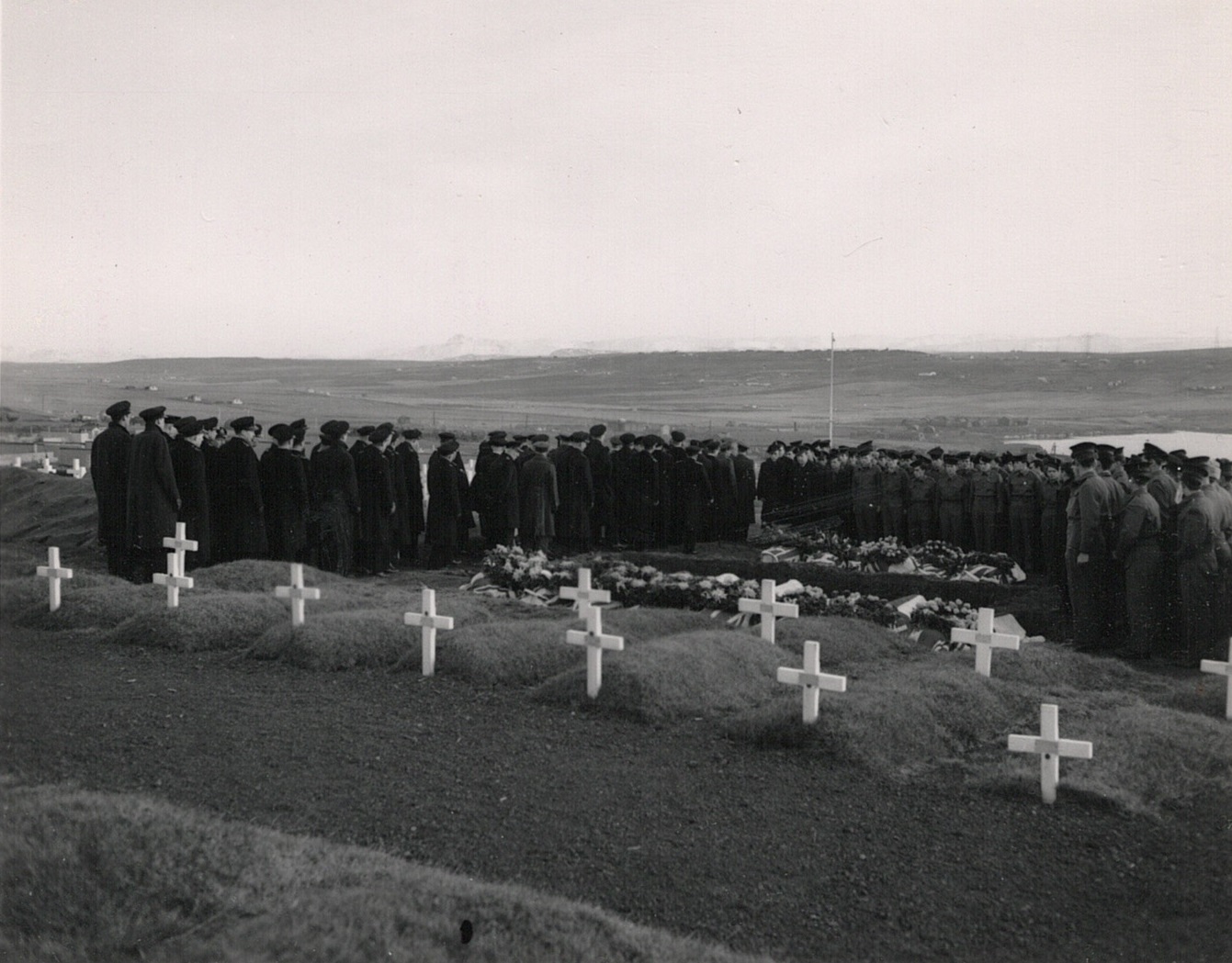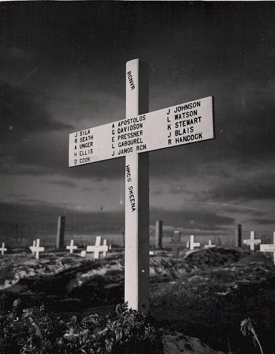The funeral for the SKEENA dead was carried out on October 28th, 1944, 3 days after loss of the ship. The men were buried with full naval honours in the war section of the Fossvogur Cemetery in Reykjavik.