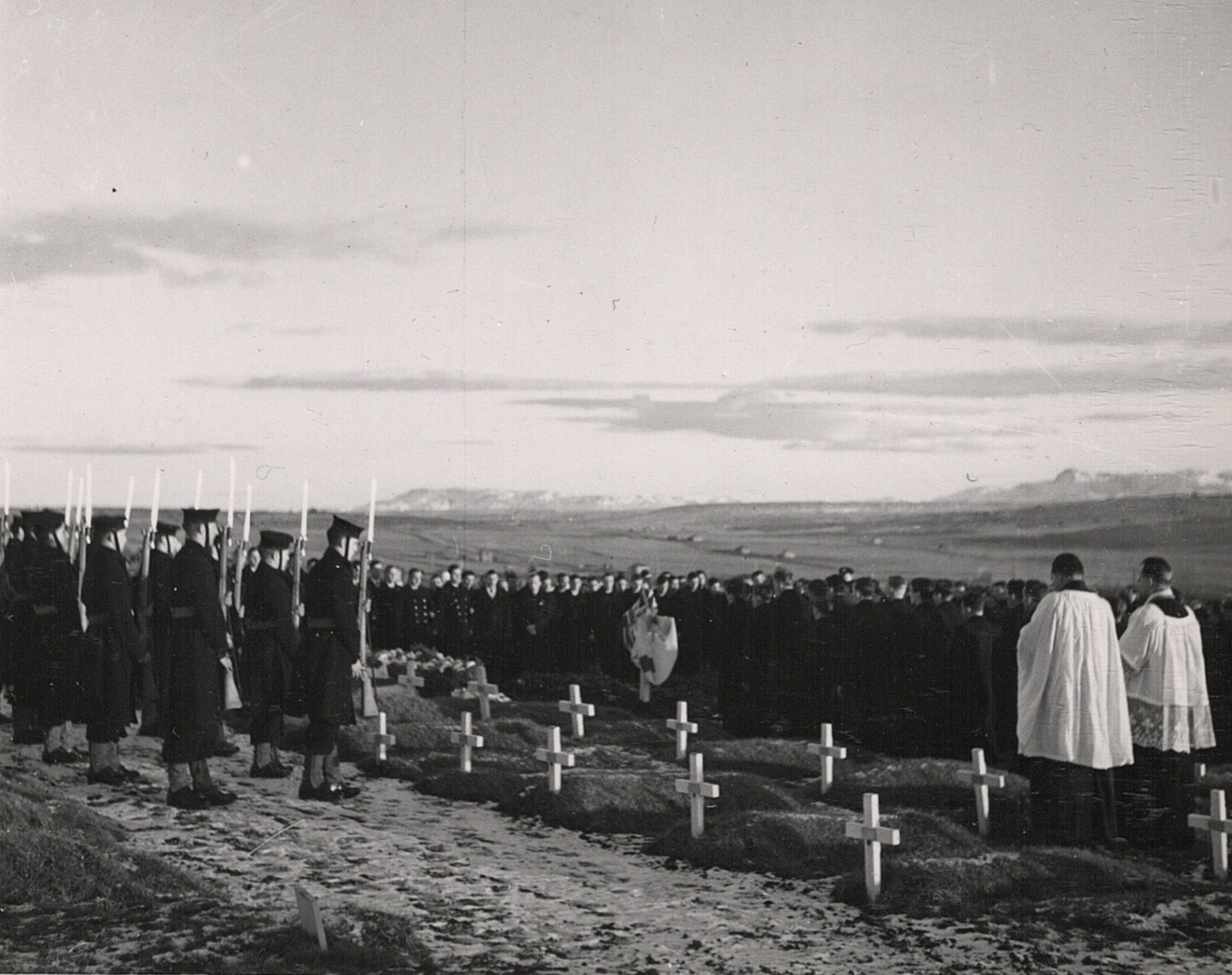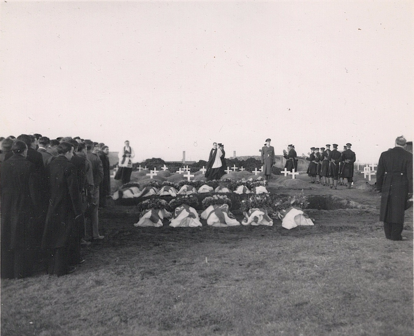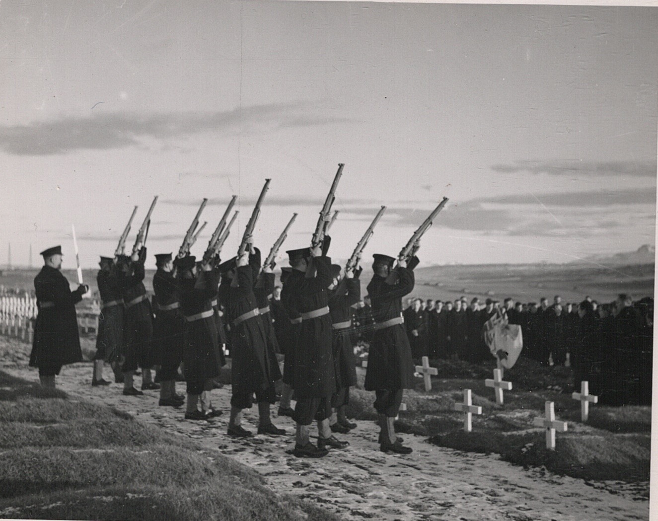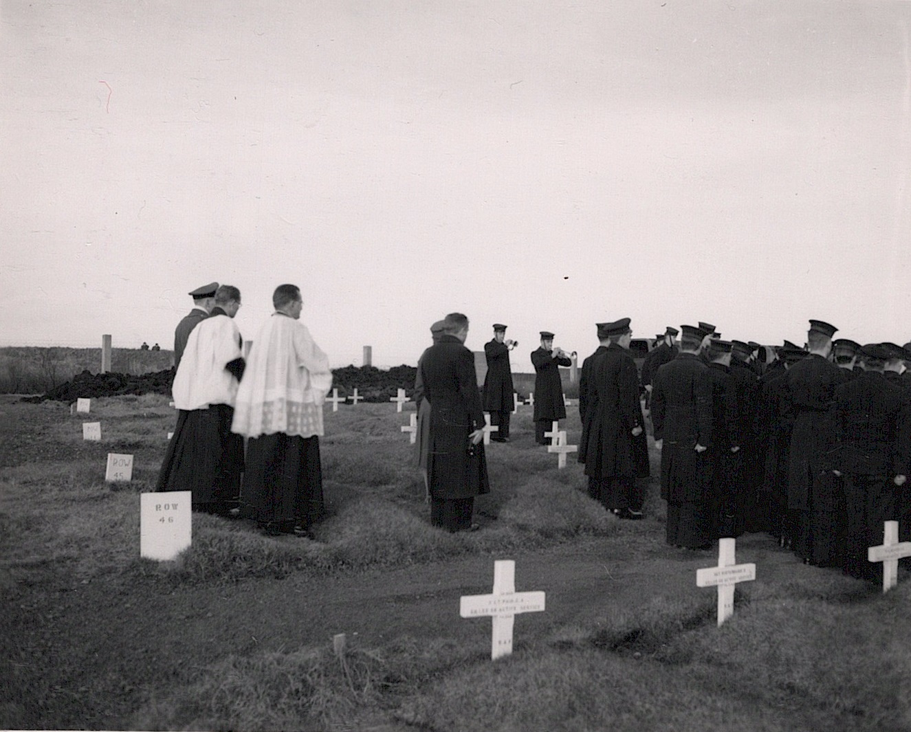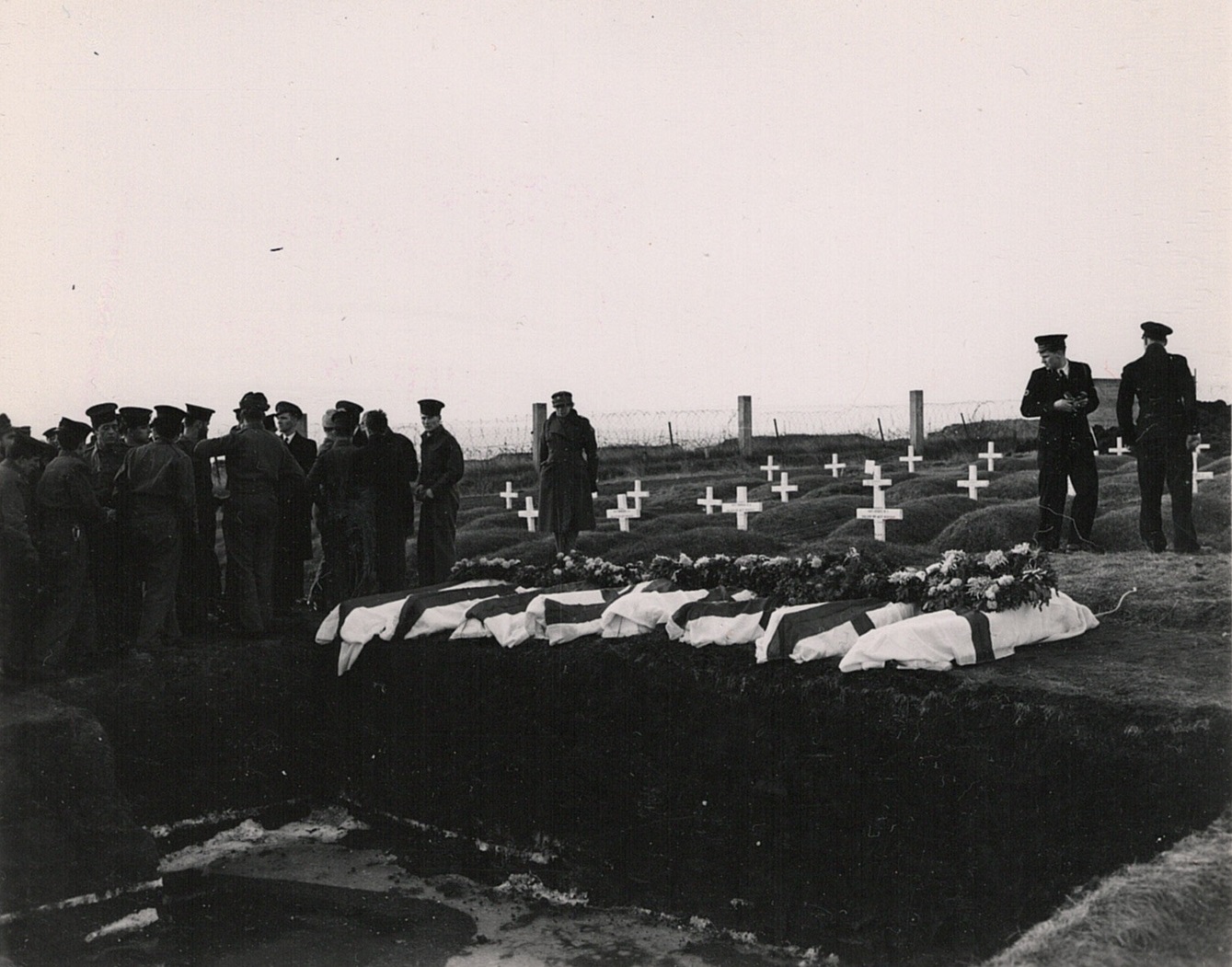 The funeral for the SKEENA dead was carried out on October 28th, 1944, 3 days after loss of the ship. The men were buried with full naval honours in the war section of the Fossvogur Cemetery in Reykjavik.