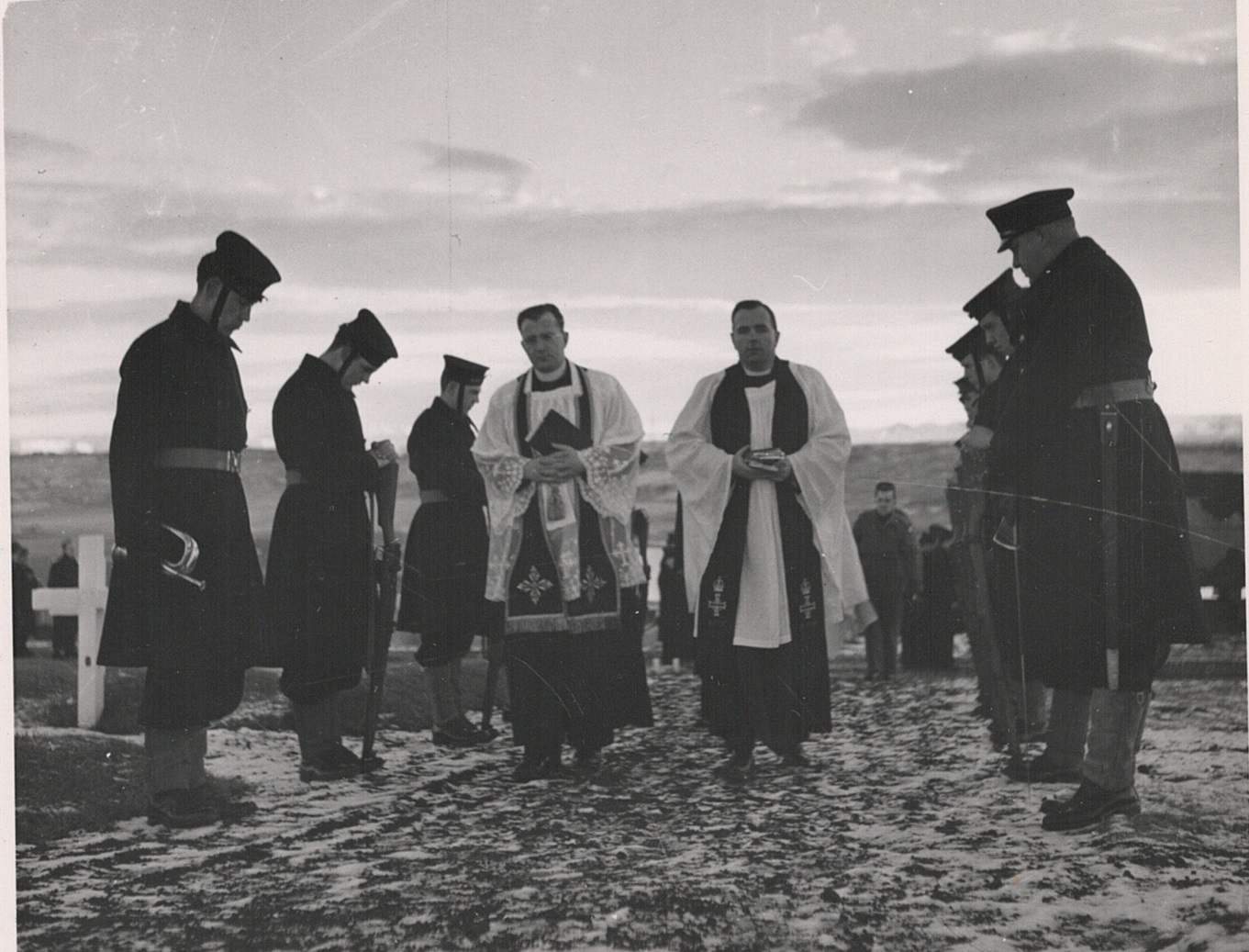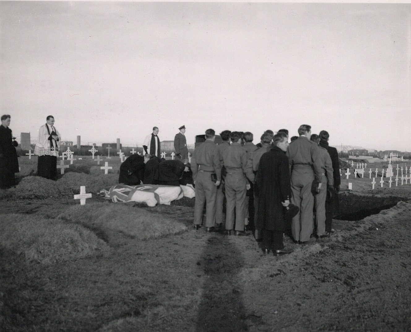 Over 500 personnel, made up of men from the ST LAURENT, QU'APPELLE and other Canadian ships in Reykjavik, attended the service. Services were read and a firing party discharged their salute. Last post and reveille were sounded. It has been written that this was the most impressive funeral ever seen in Iceland.