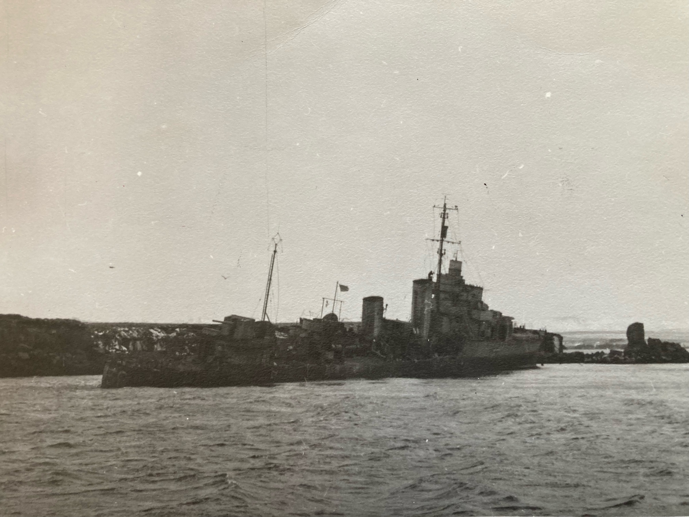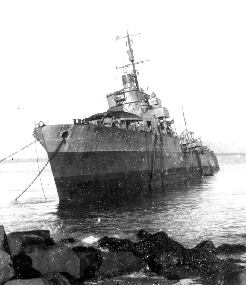 (AM02) HMCS SKEENA D59 (AM03-AM04) HMCS SKEENA aground and wrecked on Vidoy Island, Iceland From the collection of Lt (E) Alan (Aldo) Marzocco Courtesy of Michael Marzocco