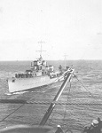 (BB267) Late 1943 when SKEENA was part of C-3 Escort Group - also known as the Barber Pole Brigade