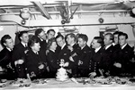Note: From Cdr Peter Chance, RCN, ret'd, who was the Navigating Officer on HMCS SKEENA in 1943-1944, these photos are of the ship's Christmas celebration in Dec 1943 and he believes the ship was in Londonderry at the time. "We were a happy ship as you can see."