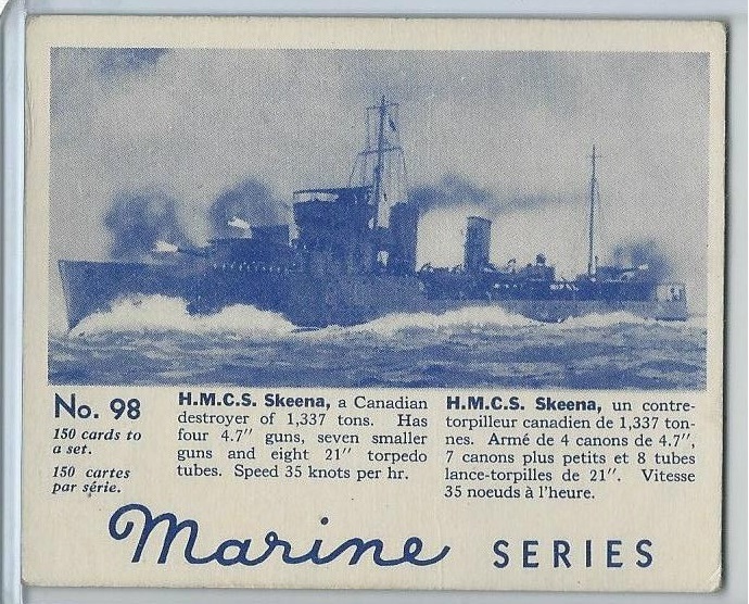 (SK024) From undated newspaper - Account of the action that took place during Operation Dredger // From the collection of AB Dave Christison, RCNVR // Courtesy of Thomas Christison (SK025) Article on HMCS SKEENA'S participation in action in the English Channel // From the collection of Robert James Hackwood // Courtesy of Joanne Hackwood (SK026) World Wide Gum, Marine Series, 1944 - #98 HMCS SKEENA (SK027) HMCS SKEENA I59 // From the collection of Ron Critchley // Courtesy of Diane Brown (SK028) HMCS SKEENA, Acapulco, 12 Mar 1938 // Courtesy of the Naval Museum of Halifax