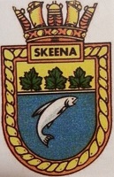 Commissioned at Portsmouth on 10 Jun 1931, she arrived at Halifax with SAGUENAY on 03 Jul 1931 and proceeded to Esquimalt the following month. On 24 Jan 1932 HMCS SKEENA and HMCS Vancouver provided protection to British assets and civilians in El Salvador at the request of the British Consul in San Salvador following the outbreak of a peasant uprising. A landing party was briefly sent ashore at Acajutla, but the situation there improved and the sailors saw no combat, although the two ships remained in the area until the end of the month. On 05 Jan 1935, HMCS SKEENA and HMCS VANCOUVER departed Esquimalt for exercises in the Kingston, Jamaica area with HMCS CHAMPLAIN and HMCS SAGUENAY, SKEENA returned to Halifax in Apr 1937. In the 1938, HMCS SKEENA, HMCS Fraser, HMCS SAGUENAY and HMCS ST LAURENT paid a port visit to San Diego as part of the spring training cruise. The East and West ships rendezvoused at the Panama Canal for joint exercises. When war broke out, SKEENA was engaged in local escort duties until ordered to the U.K. On her arrival at Plymouth, on 31 May 1940, she was assigned to Western Approaches Command taking part in the evacuation of France and escorting convoys in British waters. On 23 Nov 1940, while escorting convoy SC.11, SKEENA rescued 6 survivors from the torpedoed merchant ship SS Bruse. She returned to Halifax on 03 Mar 1941, for refit, then joined Newfoundland Command, Mid-Ocean Escort Force (MOEF). In Apr 1942, she became a member of EG C-3. During this period she saw continuous convoy duty and on 31 Jul 1942, while escorting convoy ON.115, shared with WETASKIWIN in the sinking of U 588. In May 1944, she was assigned to EG 12 for invasion duties, and was present on D-Day. On 08 Jun 1944, HMCS SKEENA was attacked by U-953 (Oblt Karl-Heinz Marbach). The Gnats (acoustic torpedoes) exploded in the ship's wake with no damage to the ship. HMCS SKEENA participated in operation "Dredger" against German escort vessels at the U-boat meeting points off Brest and southward. During the night of 5/6 Jul the 12th EG, comprising of QU'APPELLE, SASKATCHEWAN, SKEENA and RESTIGOUCHE, attacked 3 patrol boats off Brest: V715 was sunk but not before hitting QU'APPELLE and SASKATCHEWAN many times with small calibre gunfire. On the night of 12 Aug 1944 SKEENA collided with QU'APPELLE during a poorly executed course change on the part of SKEENA that resulted in damage to SKEENA's bow and QU"APPELLE'S stern. Both ships safely made it back to England for repairs. That Sep 1944 she was transferred to EG 11. On the night of 24/25 Oct 1944, SKEENA was wrecked in a storm. She was anchored off Reykjavik, Iceland and dragged her anchor and grounded in 50-foot (15 m) waves off Viðey Island with the loss of 15 crewmembers. Her hulk was written off and sold to Iceland interests in June 1945; she was then raised to broken up. Her propeller was salvaged and used in a memorial near the Viðey Island ferry terminal.