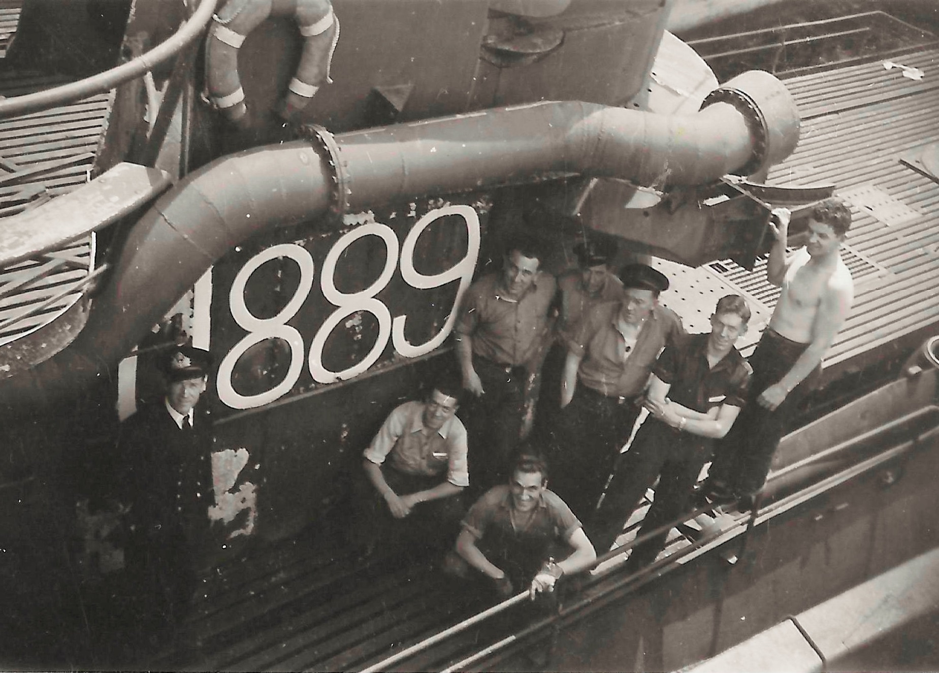 HMCS U-889 - former German U-boat U-889 (FM448) HMCS U-889 (FM449) Taylor, Ross, Vincent, Gaumont, Pastorius and Smith on HMCS U-889 (FM450) Taylor, Gaumont, Ross and François Messier on HMCS U-889 (FM451) Ross, François Messier and Gaumont on HMCS U-889 (FM452) Skpr-Lt J. Lionel N. Cormier, CO HMCS STANDARD COASTER and Ross on HMCS U-889