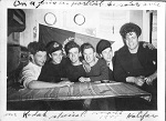 (FM270) Améedée Morin pouring himself a drink in the C.O.'s cabin on HMCS STANDARD COASTER - 27 Feb 1944 (FM271) "Ross Vn Stocher" in the C.O.'s cabin on HMCS STANDARD COASTER - 27 Feb 1944 (FM272) Ross, Gaumont, Bernier, Child, Bélanger and Inglis in the C.O.'s cabin on HMCS STANDARD COASTER - 27 Feb 1944 (FM273) Chief Jenkins, Sig George Taylor and Hanna in the C.O.'s cabin on HMCS STANDARD COASTER (FM274) Chief Jenkins, Tel Roberts and Hanna "They are not too affected by their tot" in the C.O.'s cabin on HMCS STANDARD COASTER
