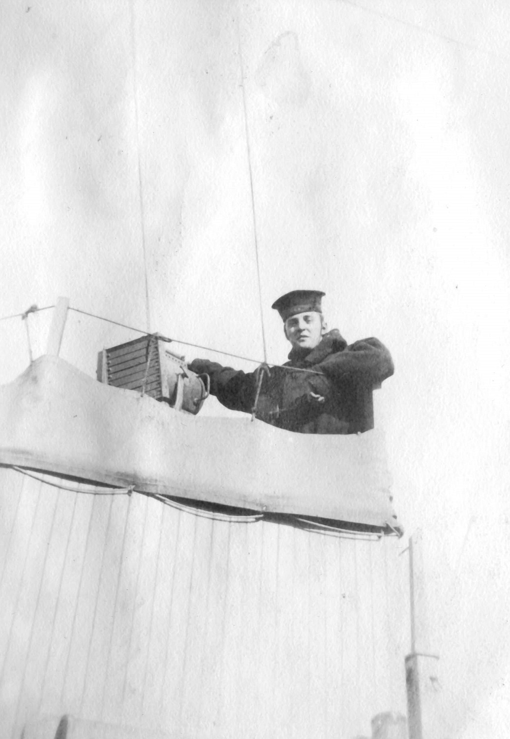 (FM174) Convoy departing Halifax - 28 Feb 1942 (FM175) François Messier at work on HMCS STANDARD COASTER, Shelburne, NS - 12 Mar 1942 (FM176) François Messier getting out an Aldis Lamp on HMCS STANDARD COASTER - 05 Apr 1942 (FM177) Unknown sailor on HMCS STANDARD COASTER