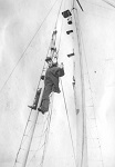 The mast on HMCS STANDARD COASTER being re-rigged - 1942 (FM169) Unknown sailors climbing HMCS STANDARD COASTER'S mast (FM170) "Petit mousse reinturant le mât" (FM171) François Messier up top on the mast as it is being re-rigged (FM182-FM173) François Messier (left) on top of the mast with unknown shipmate .... rigging done - time for painting