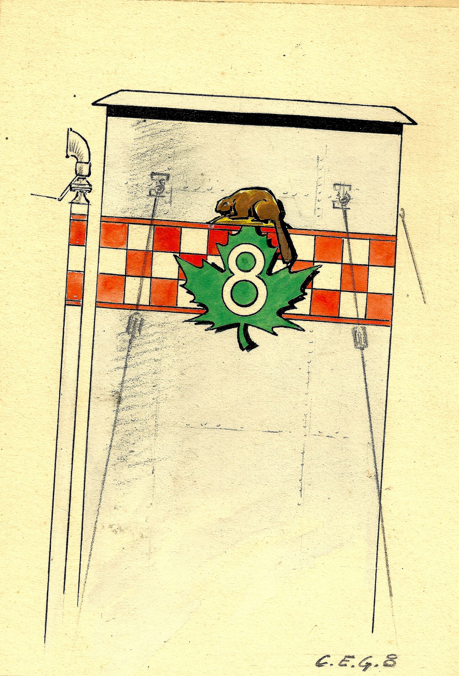 (1) Lead ship - HMCS STONE TOWN, then HMCS Leaside. Photo taken from HMCS Humberstone  (2) HMCS STONE TOWN jacket crest  (3) Unknown sailor on the after mast of HMCS STONE TOWN  (4) HMCS STONE TOWN in Quebec City  (5) Quarterdeck of HMCS STONE TOWN  (6) HMCS STONE TOWN - place unknown  (7) Lawrence (Larry) Musser on lookout, HMCS STONE TOWN  (8) Vermoid Bradley by a depth charge thrower on HMCS STONE TOWN