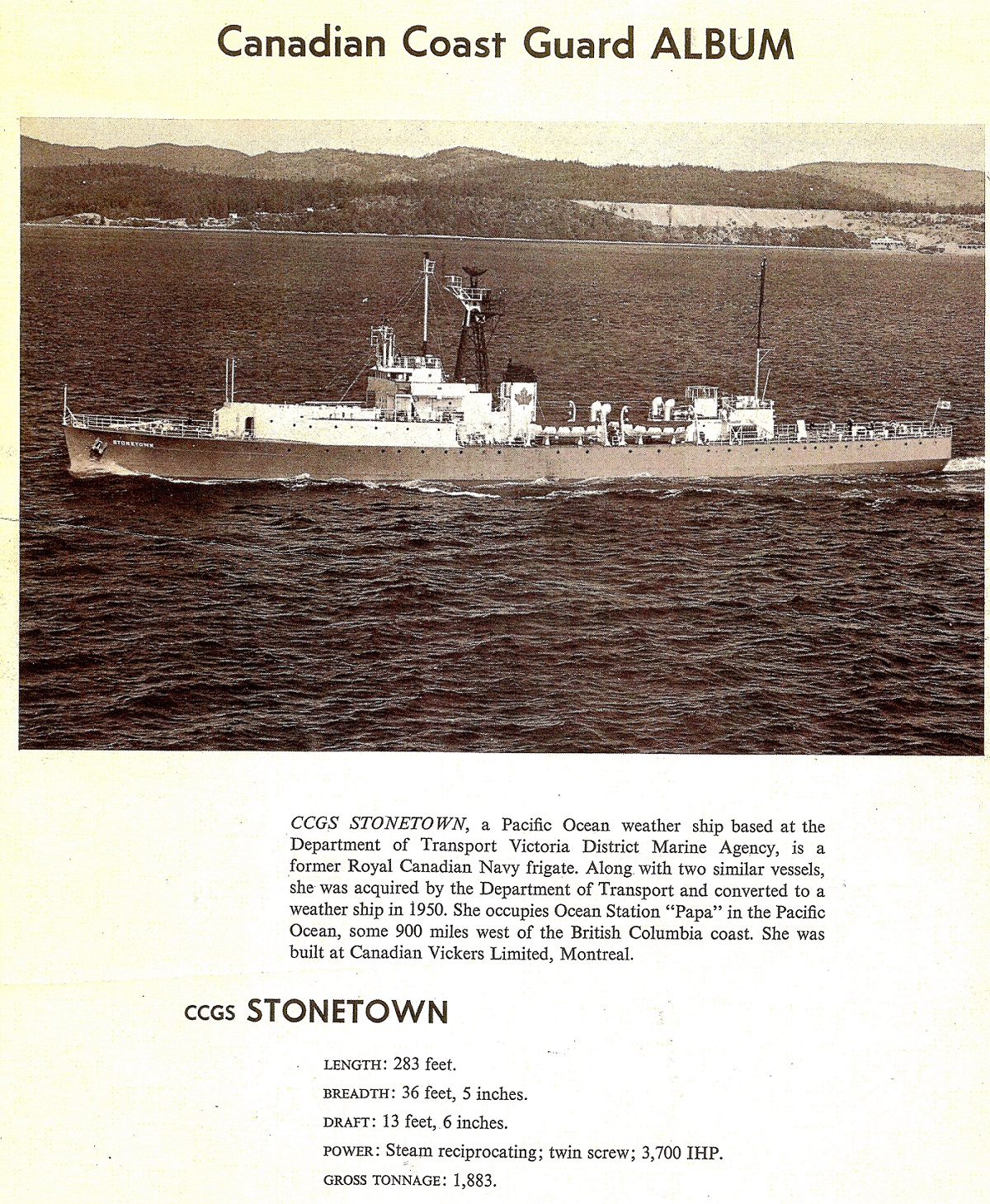 Canadian Coast Guard ocean weather ship STONE TOWN, British Columbia 1962
