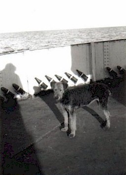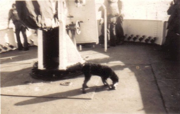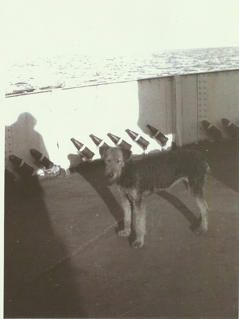 (RS49) Lt Hugh Scully and Paym/Lt William (Bill) Fitzgerald, HMCS STONE TOWN  (RS50) HMCS STONE TOWN'S mascot "Stoney"  (RS51) HMCS STONE TOWN'S CO addresses the crew while at St. John's, Nfld  (RS52) Obstacle course race on HMCS STONE TOWN  (RS53) Richard Simon on watch on HMCS STONE TOWN K531