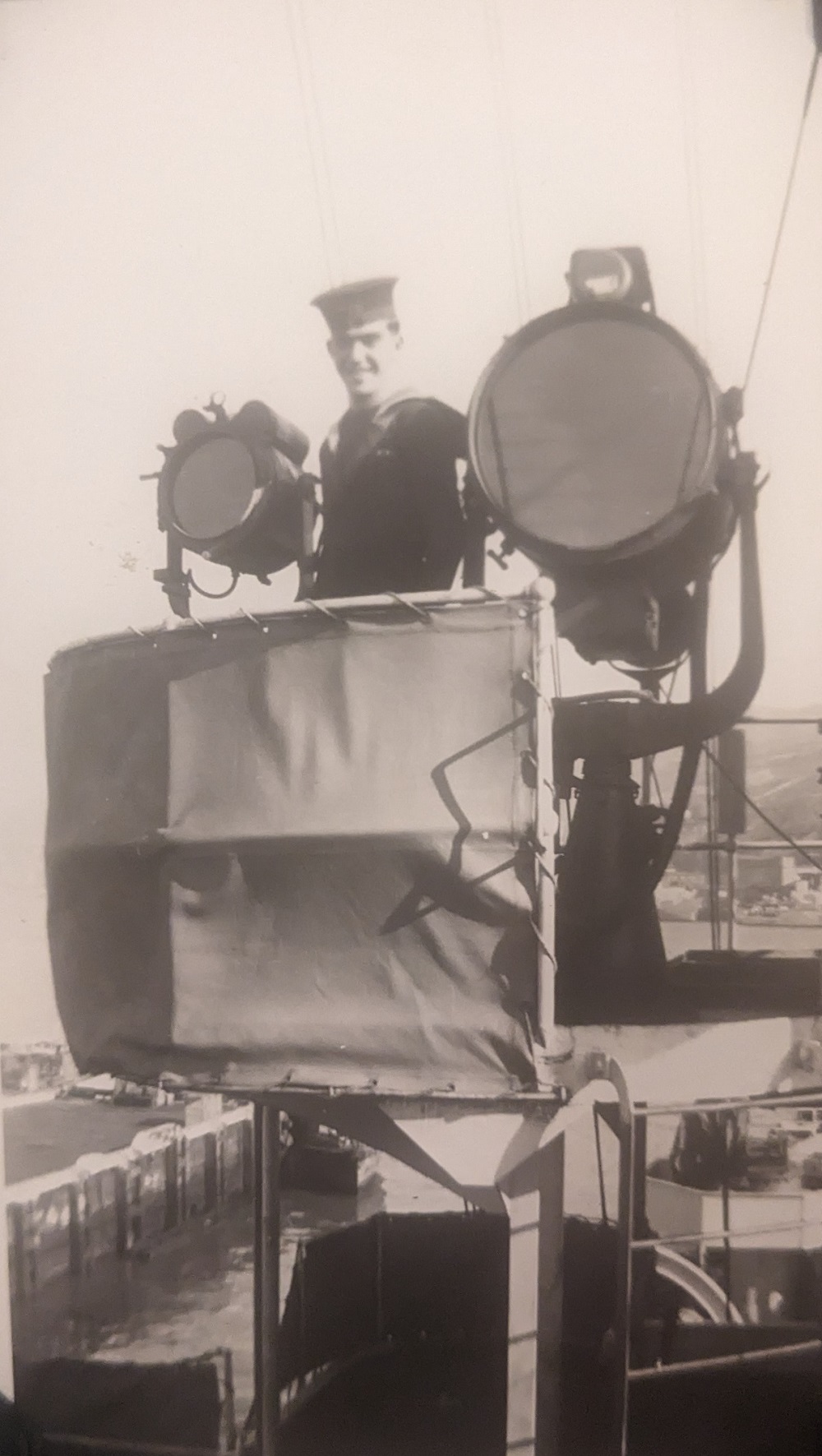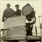 (GW32) Unknown sailor by the signal lamp on HMCS STONE TOWN K531 at St. John's, Newfoundland