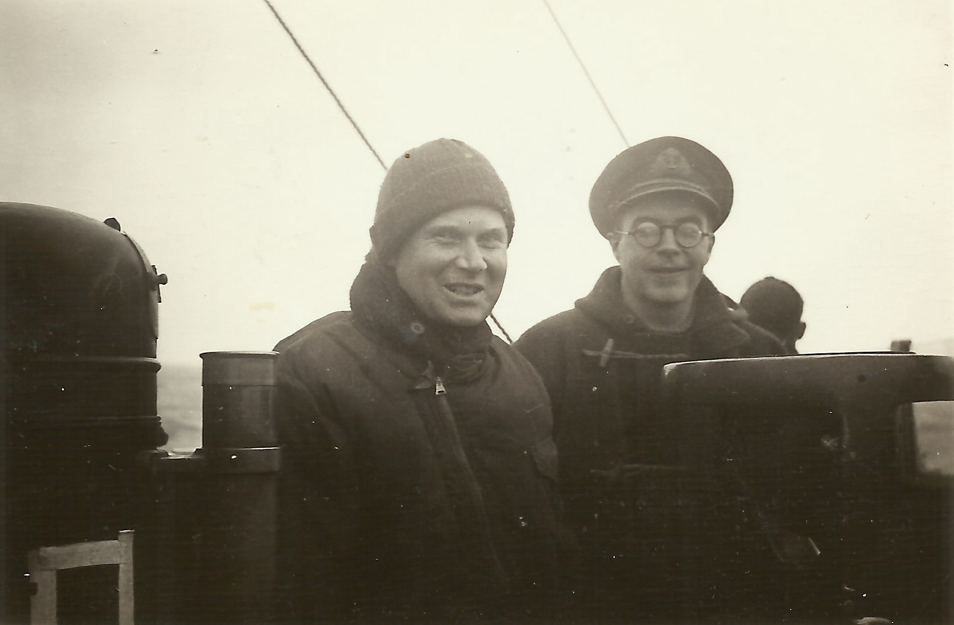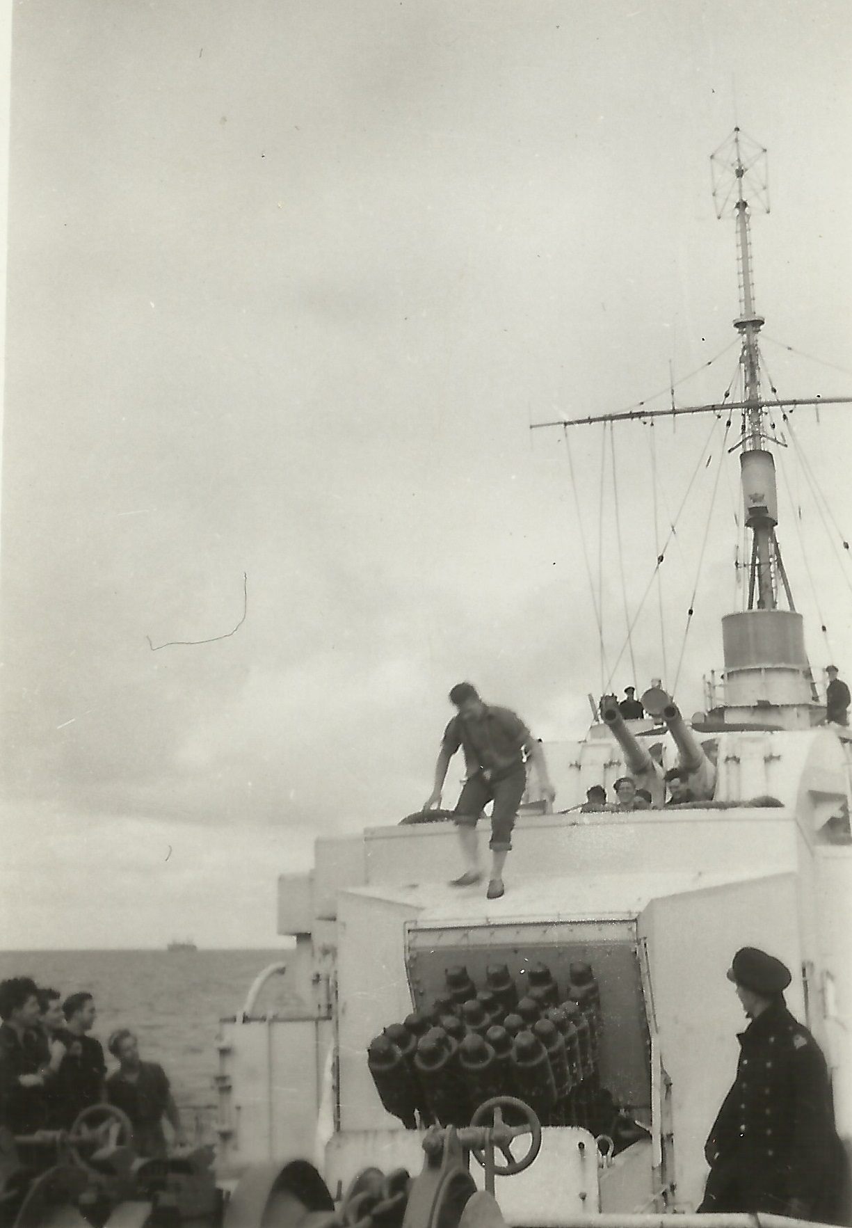 (JC08-JC10) Jack Campbell on HMCS STONE TOWN  (JC11) Jack Campbell (right) with unidentified sailor on the bridge of HMCS STONE TOWN  (JC12-JC14) HMCS HUMBERSTONE K497 - photos taken from HMCS STONE TOWN