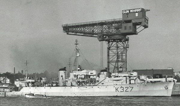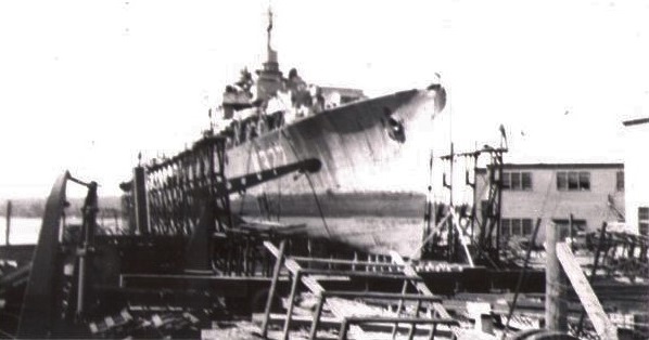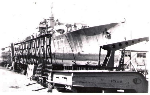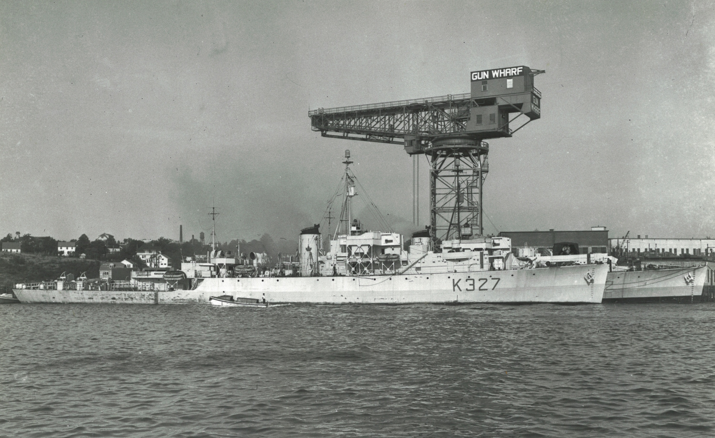 STORMONT K327 during her tropicalization refit in Shelburne, NS - 1945