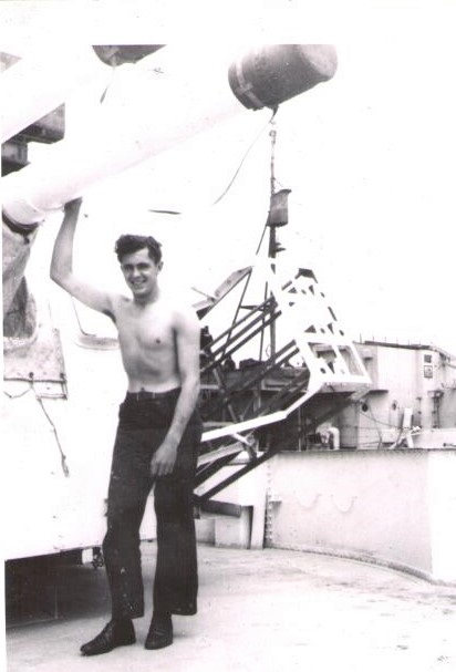 Unknown sailor by the forward gun on HMCS STORMONT K327 (RM12)