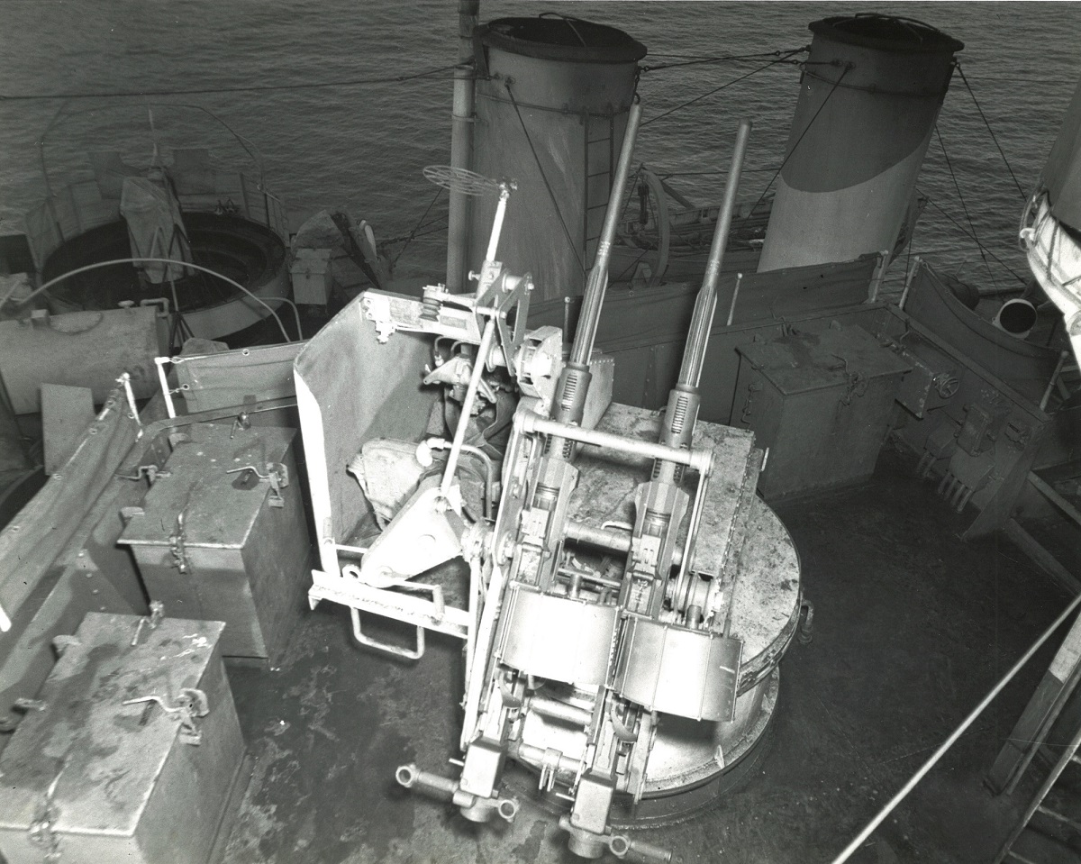 (JP03) 20 mm Oerlikon hydraulic mount on HMCS STORMONT, Halifax, Jan 1944.