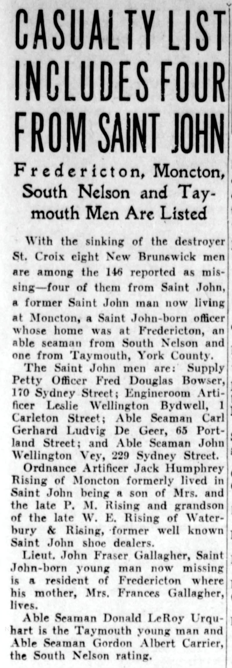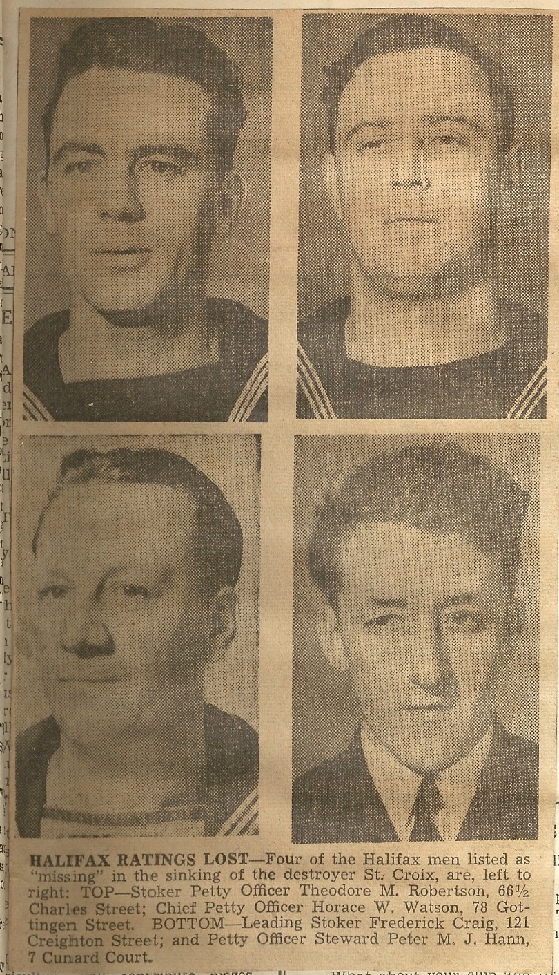 Newspaper articles on 6 of HMCS ST CROIX's Casualties